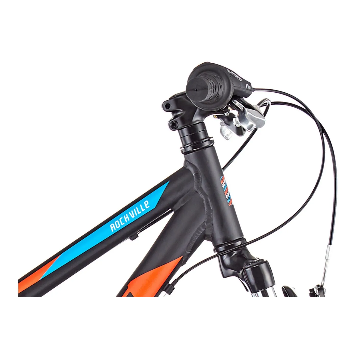 Sportowy Rockville to rower górski dla dzieci w najlepszym wydaniu. Lekka aluminiowa rama jest nie tylko bazą solidnego wyposażenia, ale również dzięki mocno wyprofilowanej górnej rurze ma bardzo przyjazną dla dzieci geometrię, zapewniając doskonałą wygodę i kontrolę jazdy.