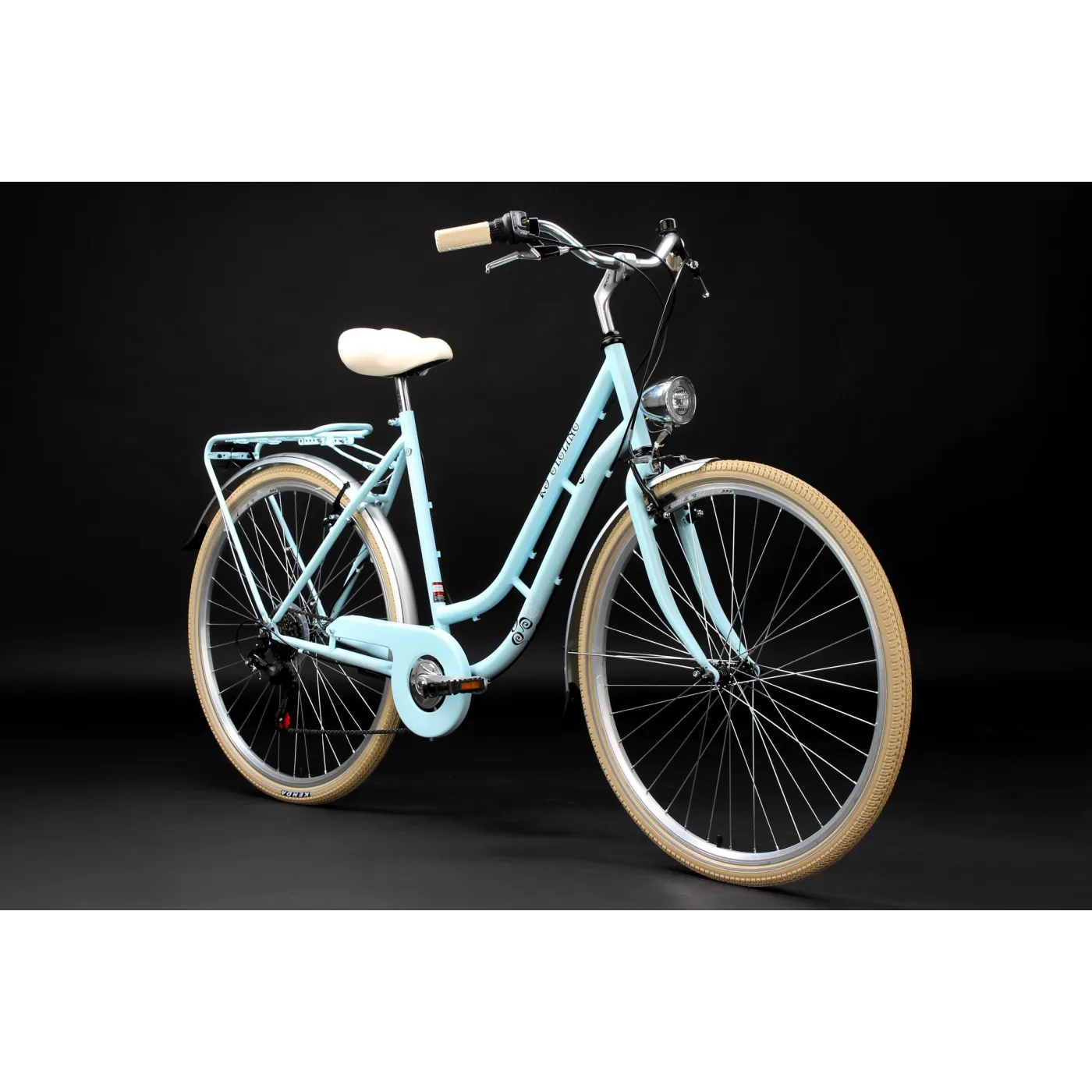 Damka ta urzeka swoim retro wyglądem, a jednocześnie wpasowuje się w najnowsze trendy. Połączenie naturalnych beżów z pięknym pastelowym niebieskim kolorem sprawia ze rower miejski Casino jest wyjątkowy. Model wykonany został z wytrzymałej stali, a do tego w zestawie znajduje się równie przydatne oświetlenie oraz bagażnik.
