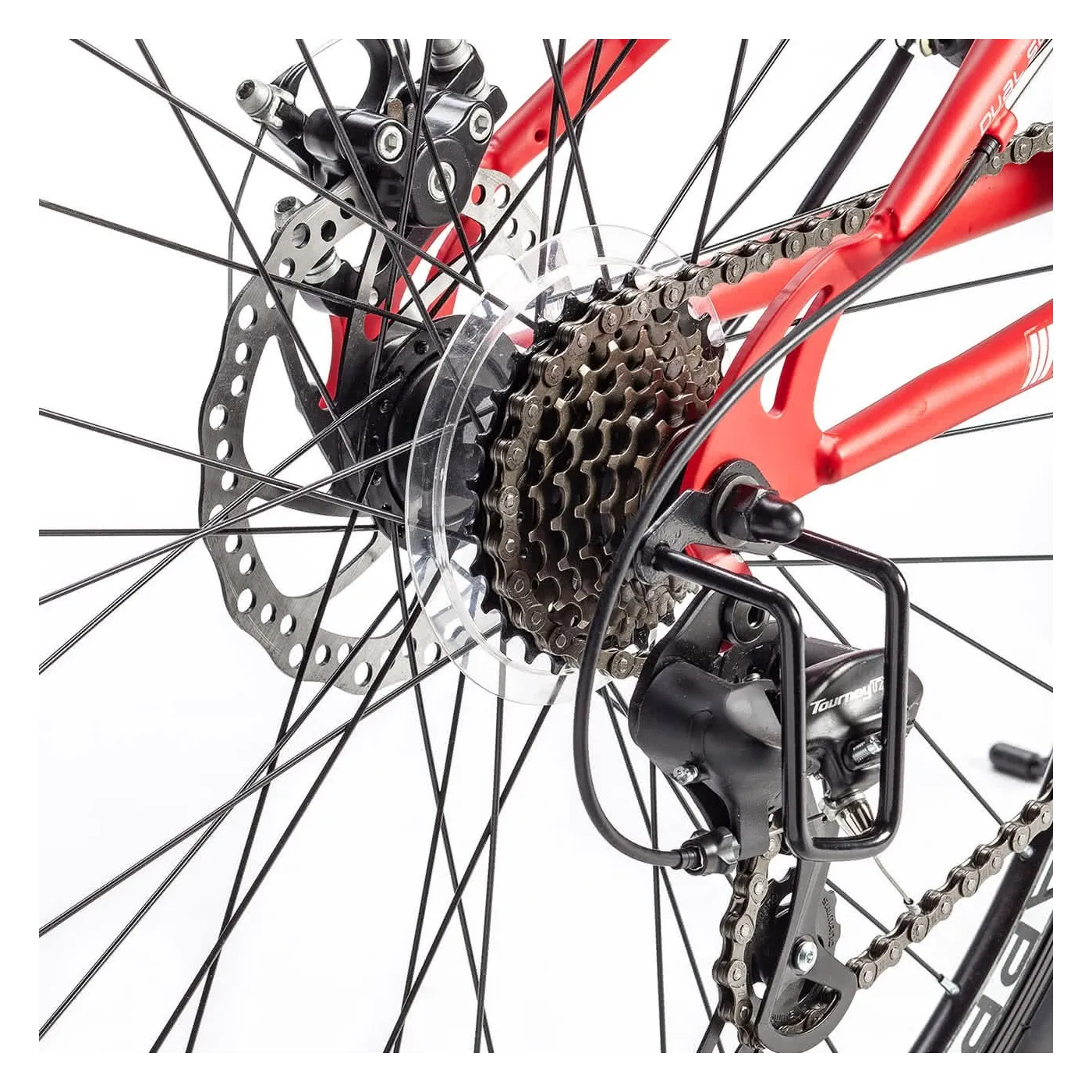 Rower górski z pełnym zawieszeniem kompensuje nierówności podłoża dzięki doskonałej responsywności i skutecznie chroni kręgosłup rowerzysty podczas jazdy poza utartymi szlakami. Zawieszenie ramy ma również pozytywny wpływ na zachowanie podczas jazdy, ponieważ zapewnia płynniejszą jazdę i łatwiejszą kontrolę nad rowerem. W Zündapp Blue 5.0 zainstalowano niewymagający konserwacji amortyzator ze sprężyną gazową, który można dostosować do indywidualnej wagi kierowcy, aby osiągnąć maksymalny komfort. Z przodu widelec amortyzowany Zoom ma 100 mm skoku, aby odciążyć ramiona i barki.