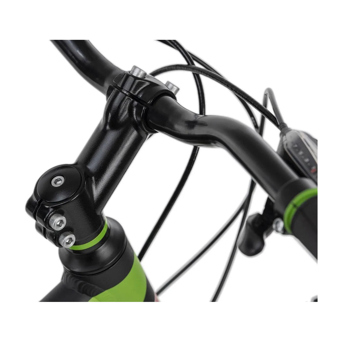 Rower jest wyposażony w 21- szybka przerzutka z komponentami SHIMANO. Niezbędne hamowanie zapewniają mechaniczne hamulce tarczowe z przodu i z tyłu. Ergonomiczne siodełko idealnie wpasowuje się w ogólny obraz.