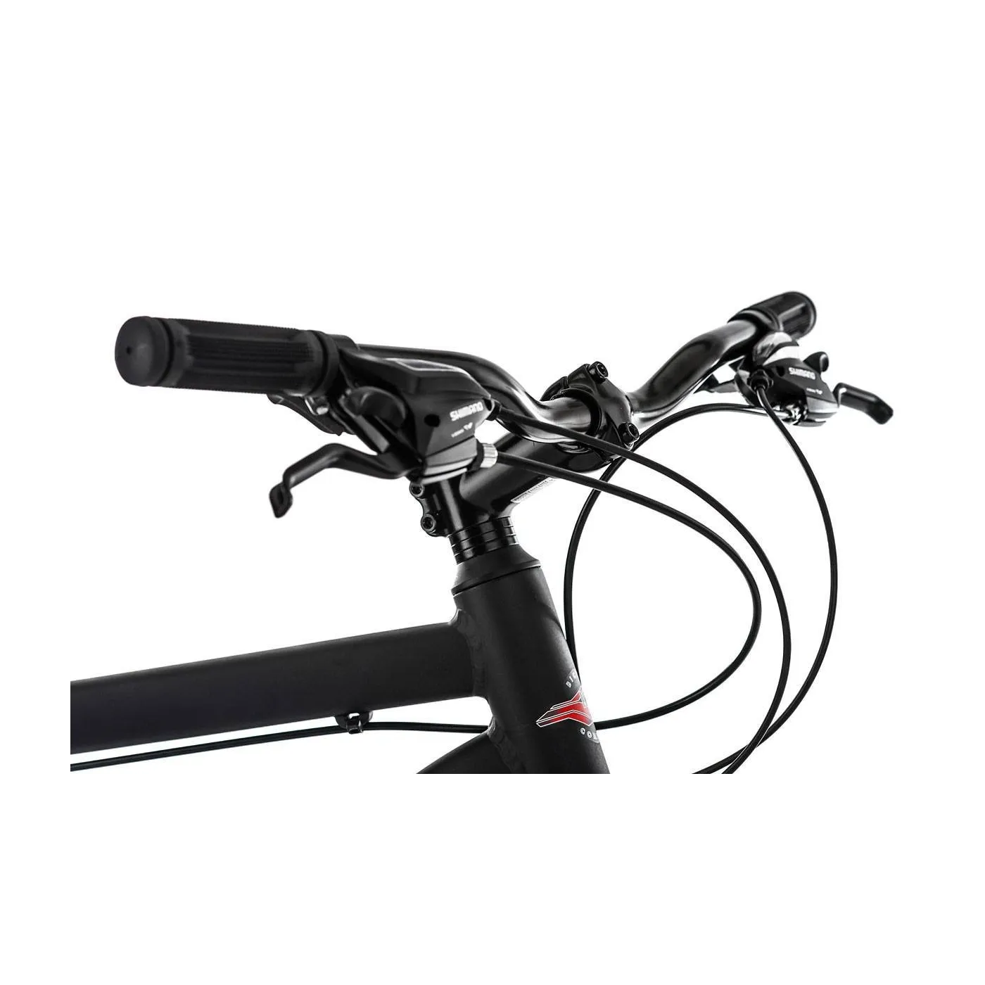 Już na pierwszy rzut oka model przykuwa uwagę swoją sportową geometrią. Świetnie dopasowana i stonowana kolorystyka o matowym wykończeniu nadaje mu mocnego charakteru. Rama wykonana została w całości z aluminium, co za tym idzie, jest przede wszystkim lekka i wytrzymała. Napęd Shimano oferuje szeroki 21- biegowy zakres przełożeń, który skutecznie pomoże przebyć niemal każdy teren.