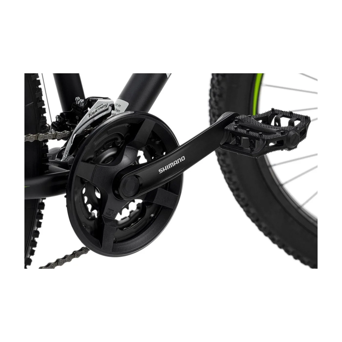 Szersze opony oferują dodatkową amortyzację oraz większą powierzchnię pozwalając na lepszą przyczepność. Hydrauliczne hamulce tarczowe SHIMANO umożliwiają bezpieczne hamowanie w każdej sytuacji, a amortyzowany widelec zapewnia wystarczający komfort. Rower jest również wyposażony w 24-biegową manetkę SHIMANO.