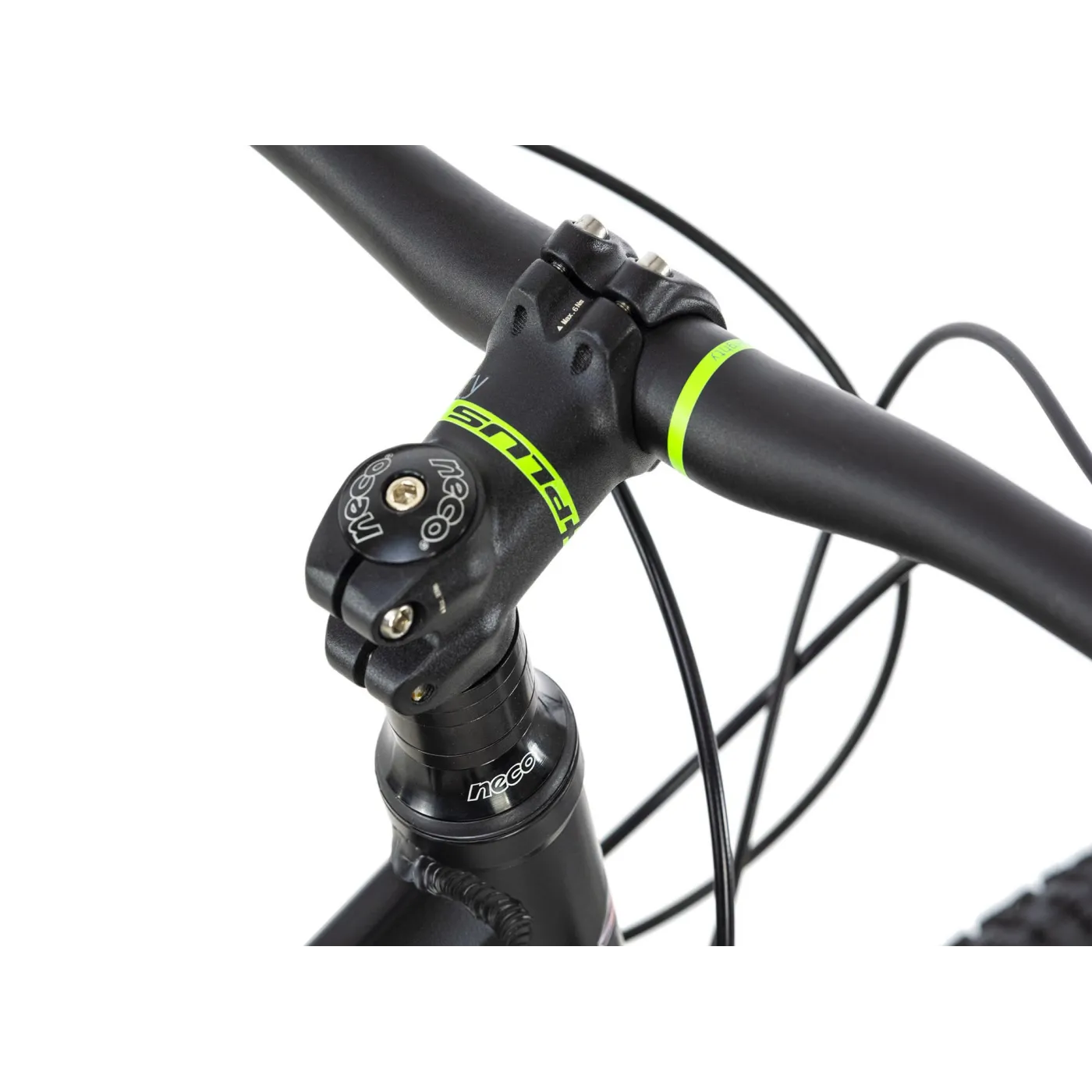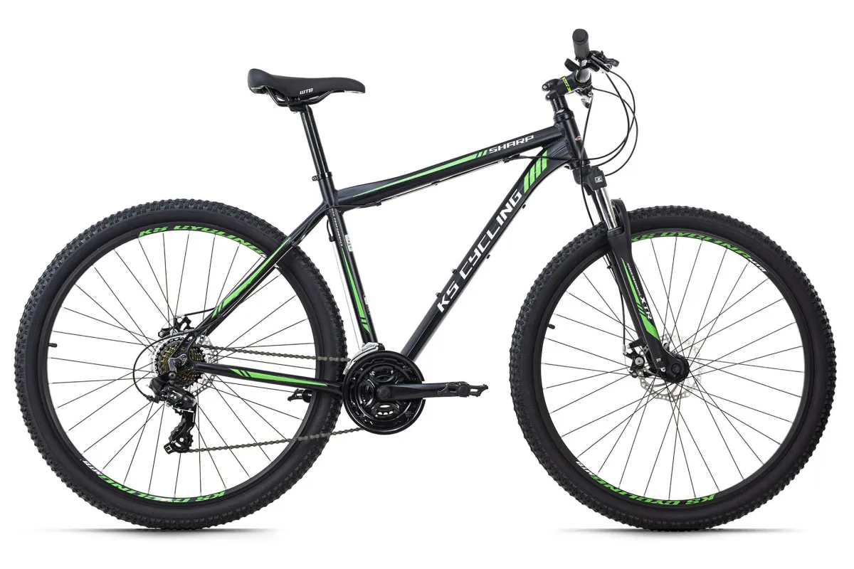 SHARP hardtail MTB od KS Cycling jest zgodny z trendami dzięki lekkiej aluminiowej ramie w kolorze satynowej czerni. Zielone detale przyciągają uwagę, a wyjątkowo ukształtowane, hydroformowane rury ramy uzupełniają unikalną konstrukcję.