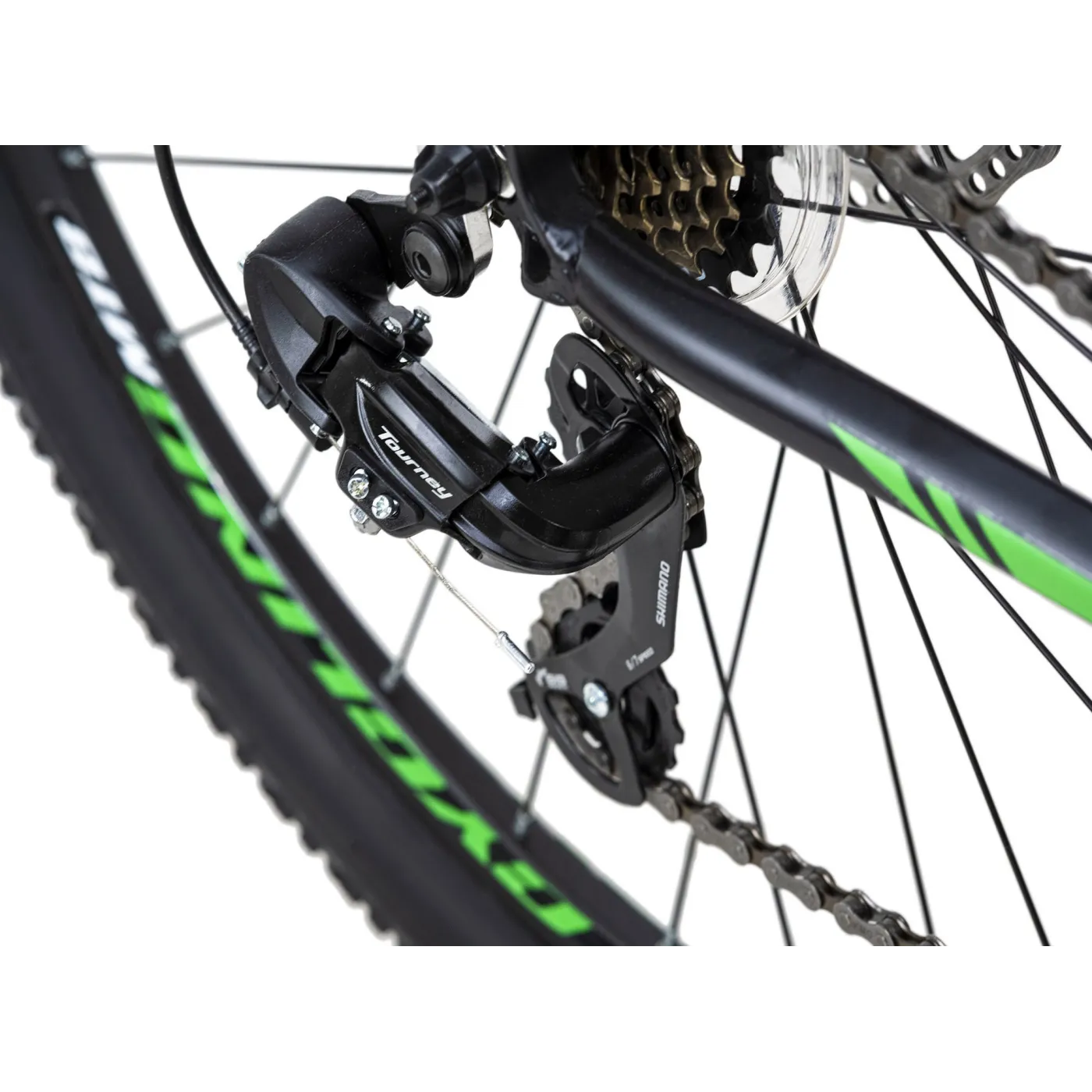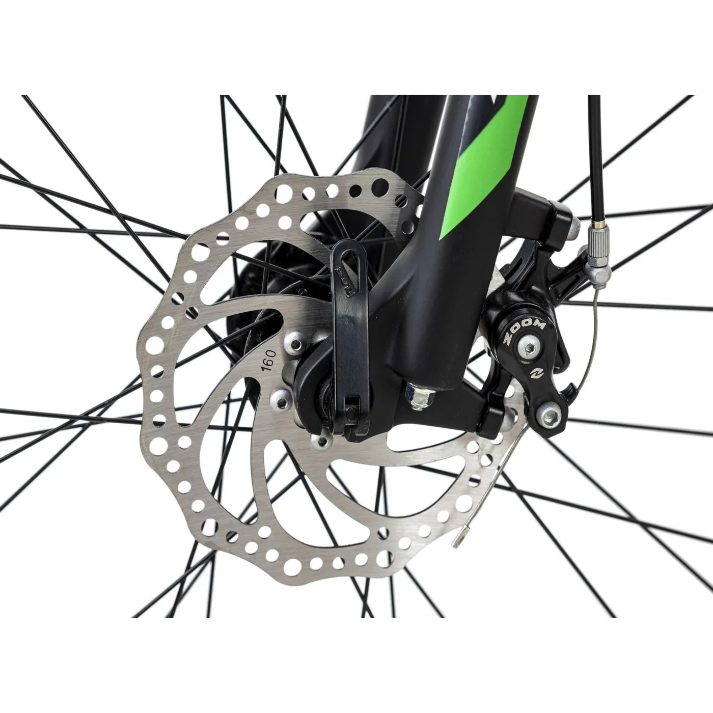 29 calowe koła lepiej pokonują przeszkody, mają większą przyczepność dzięki większej powierzchni styku i lepiej się toczą. Hamulce tarczowe umożliwiają bezpieczne hamowanie w każdej sytuacji, a widelec amortyzowany zapewnia wystarczający komfort jazdy. Rower wyposażony jest również w 21-biegowy system przerzutek SHIMANO.