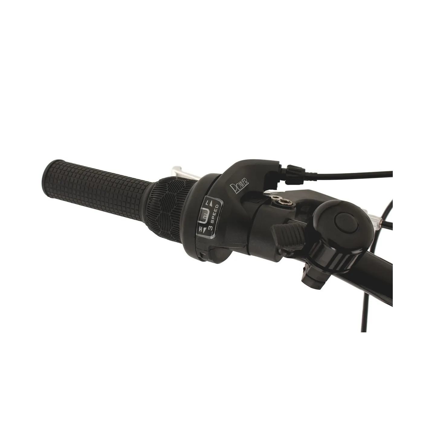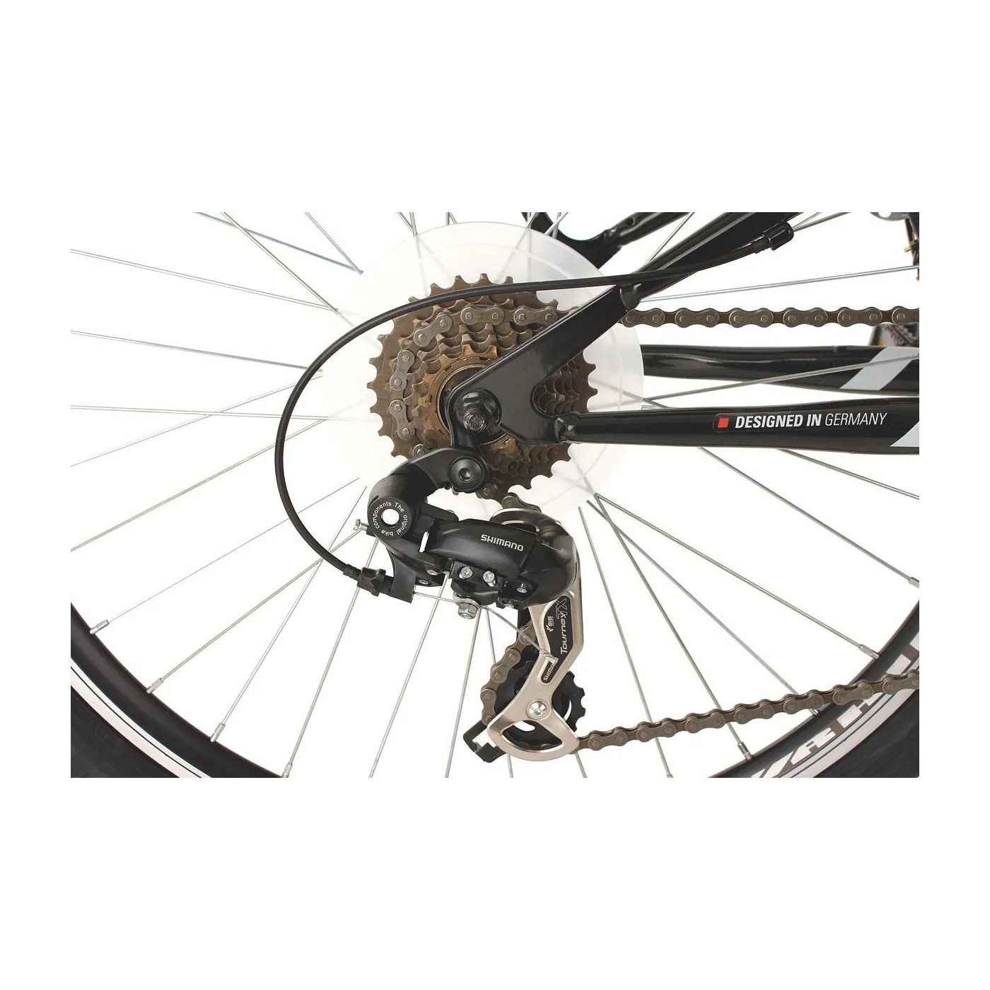Wyposażony w 21-biegową dźwignię zmiany biegów SHIMANO, którą można wygodnie i intuicyjnie obsługiwać za pomocą obrotowej manetki. Amortyzowana rama pomaga zachować kontrolę, nawet na nierównych drogach, a dwa hamulce tarczowe zapewniają bezpieczne hamowanie w każdej sytuacji.
