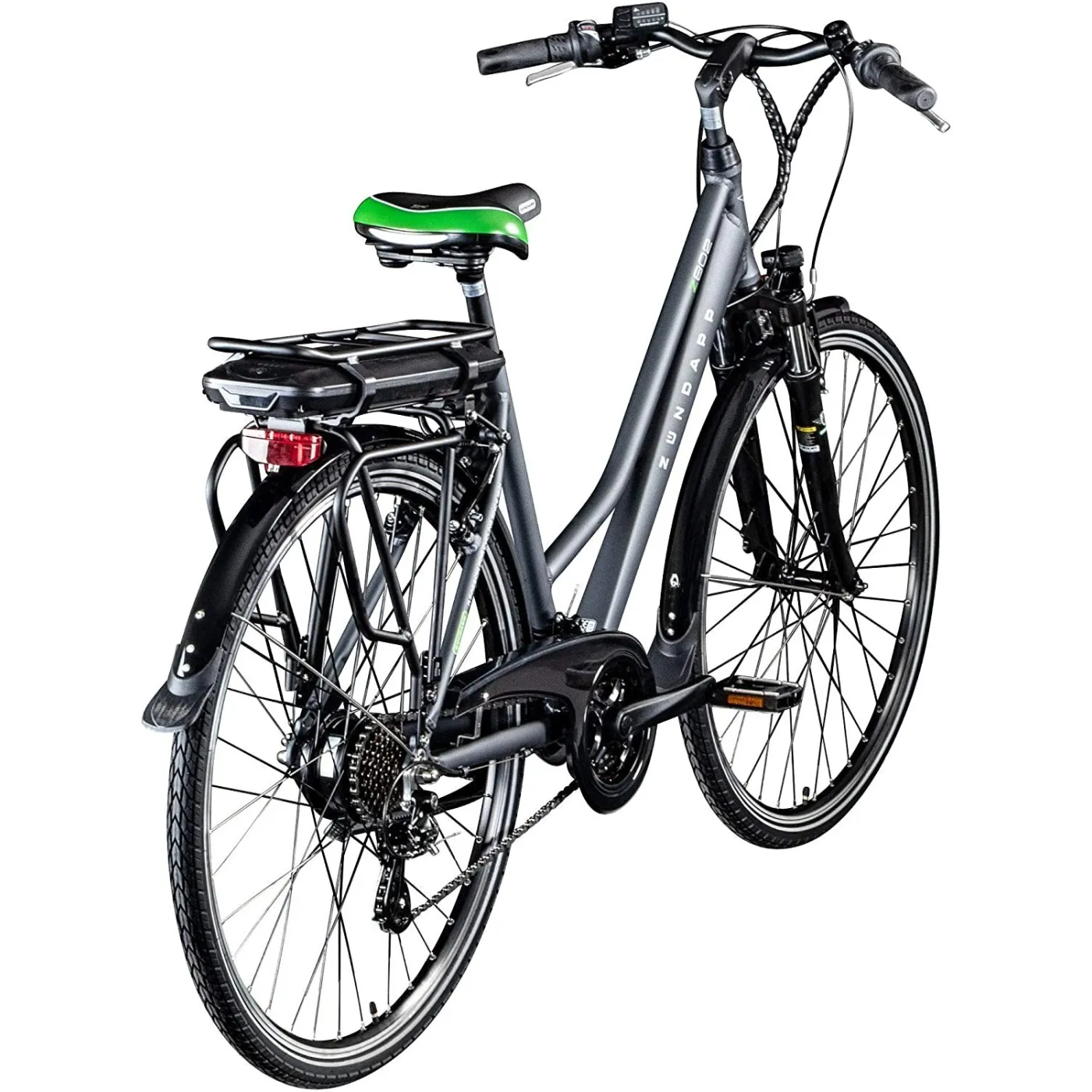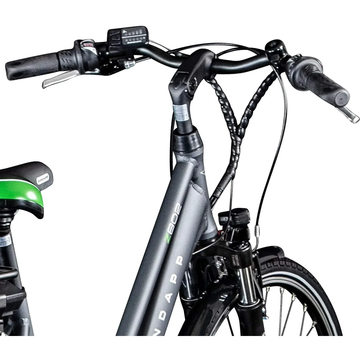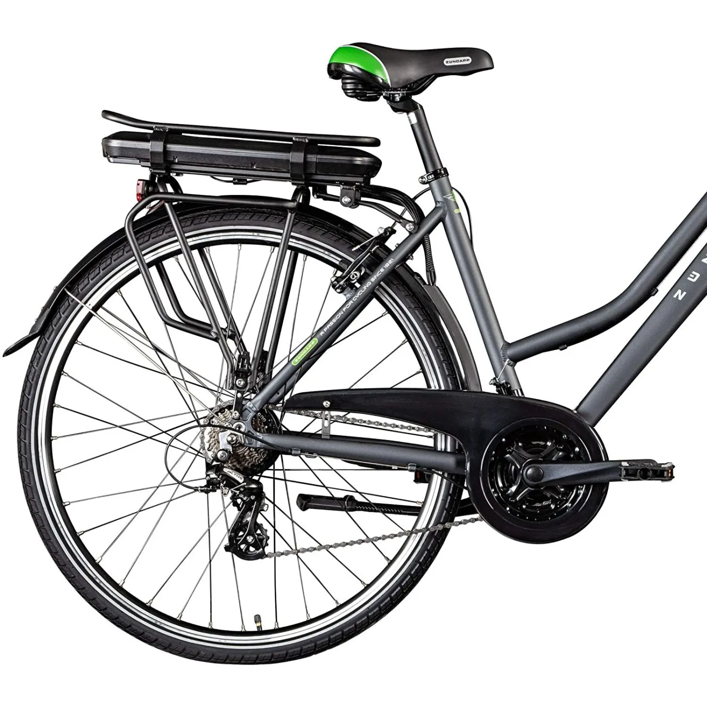 Podstawową konstrukcją e-roweru jest lekka rama diamentowa wykonana z aluminium, która jest połączona z widelcem amortyzowanym o skoku zawieszenia 63 mm. W połączeniu z kierownicą miejską z tylną korbą i mostkiem z regulacją kąta, rower zapewnia wygodną pozycję siedzącą, która pozwala jeździć przez długi czas bez objawów zmęczenia. Możesz też długo wytrzymać na wygodnym siodle.