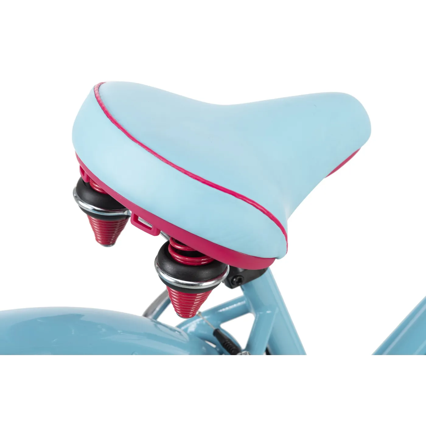 Rama roweru utrzymana jest w przyjaznym jasnoniebieskim kolorze. Szczególnie rzucają się w oczy felgi, uchwyty i efektowne siodełko pasujące do ramy – nikt nie może uciec przed taką kombinacją. Dzięki 6-biegowej przerzutce zawsze jesteś zrelaksowany na rowerze typu cruiser.