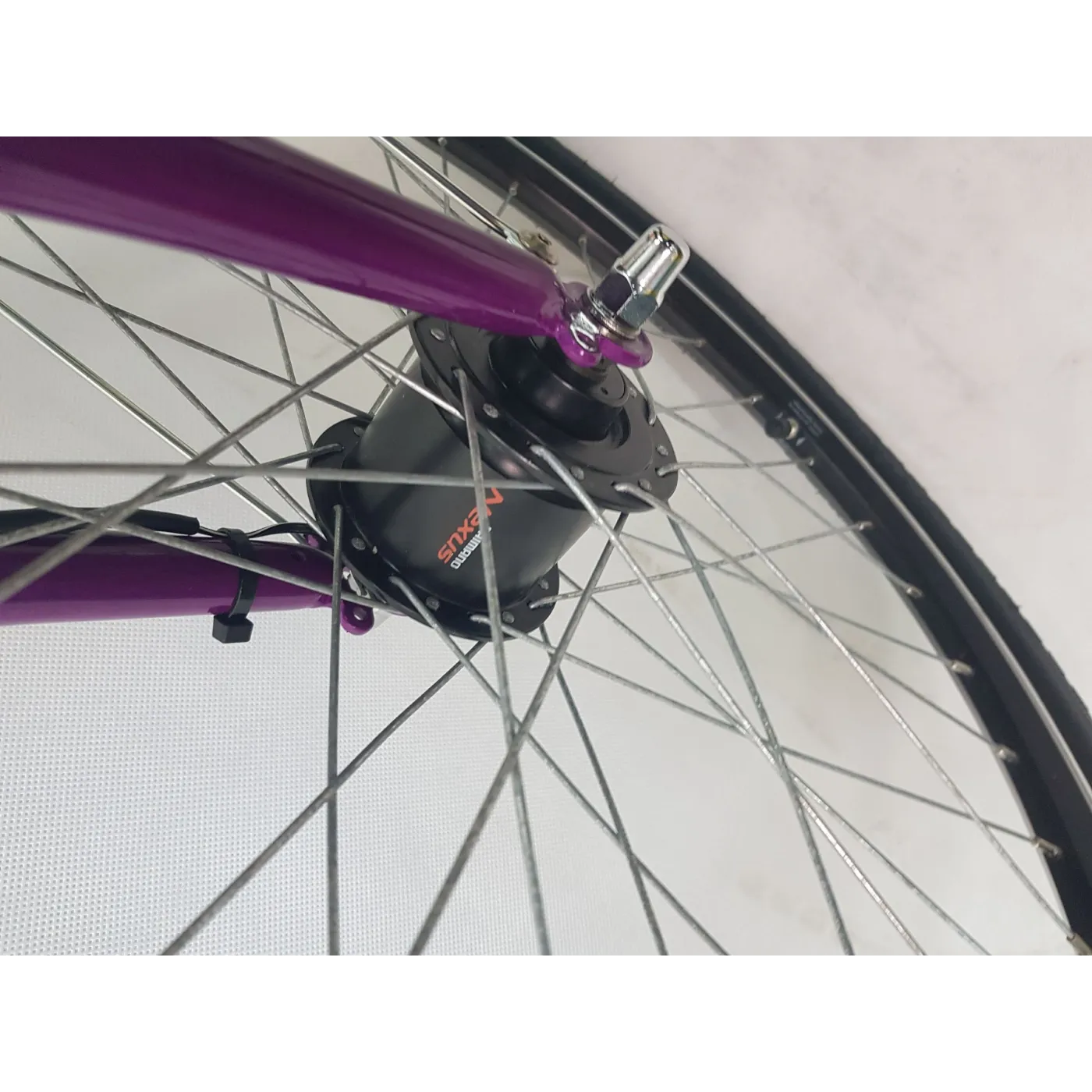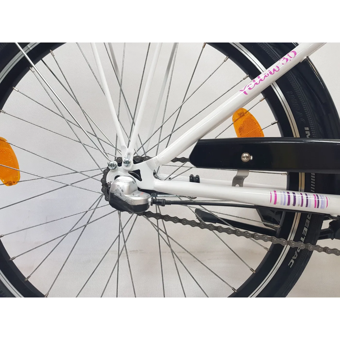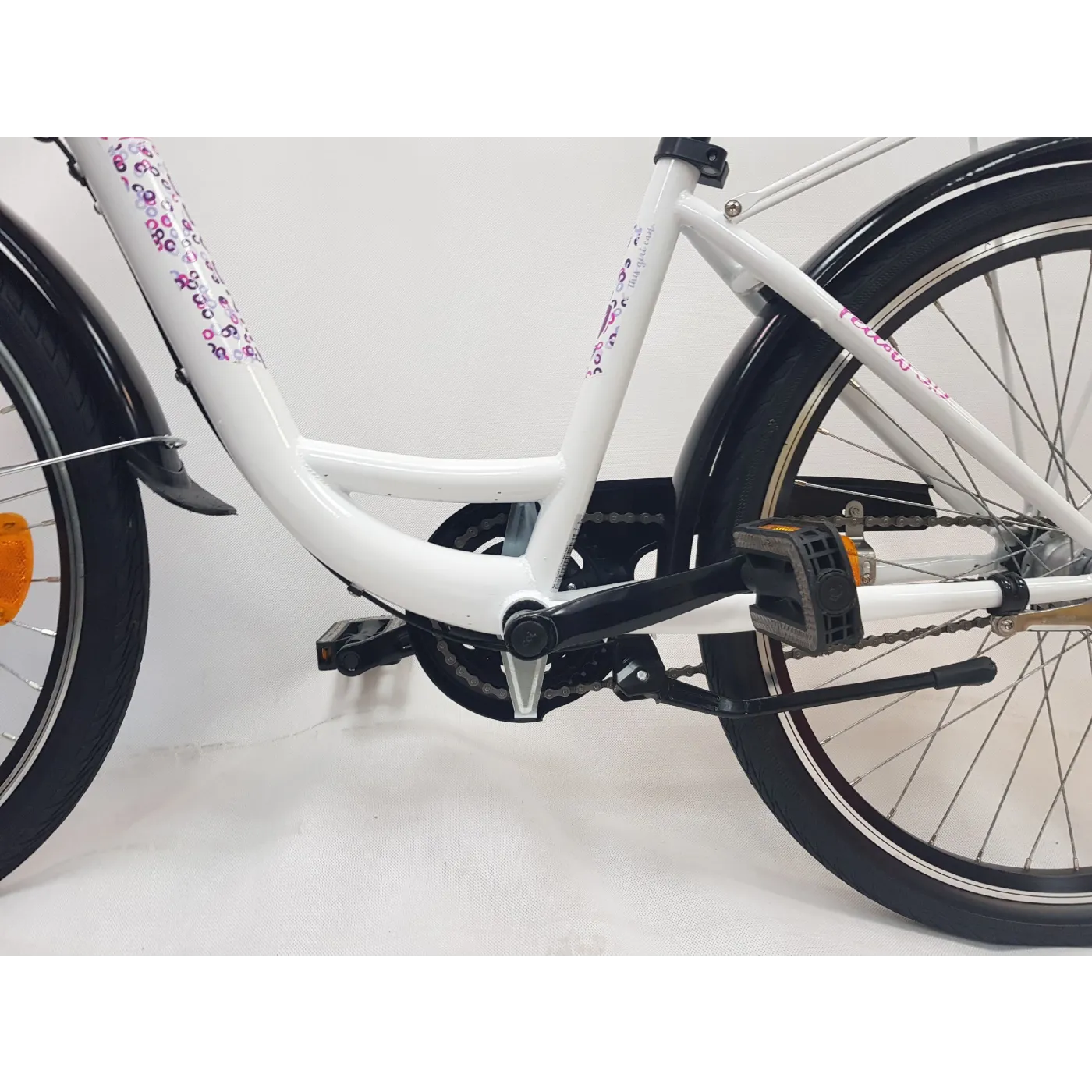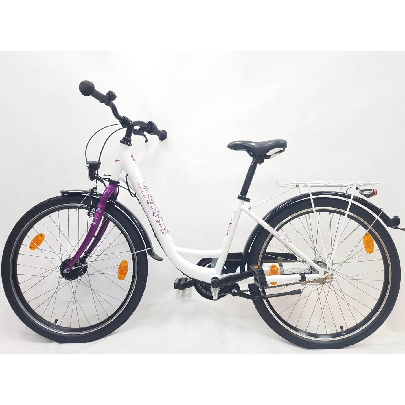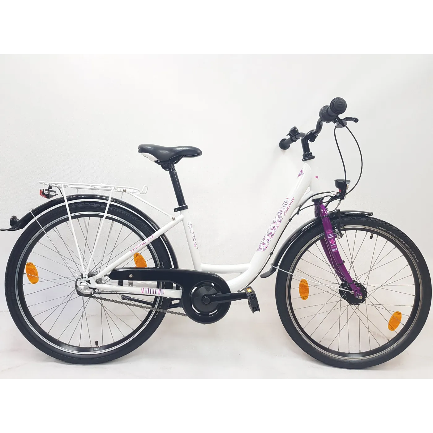 YELLOW 3.0 firmy Zundapp to wyjątkowy rowerek na 24 calowych kołach, utrzymany w biało-fioletowej kolorystyce.