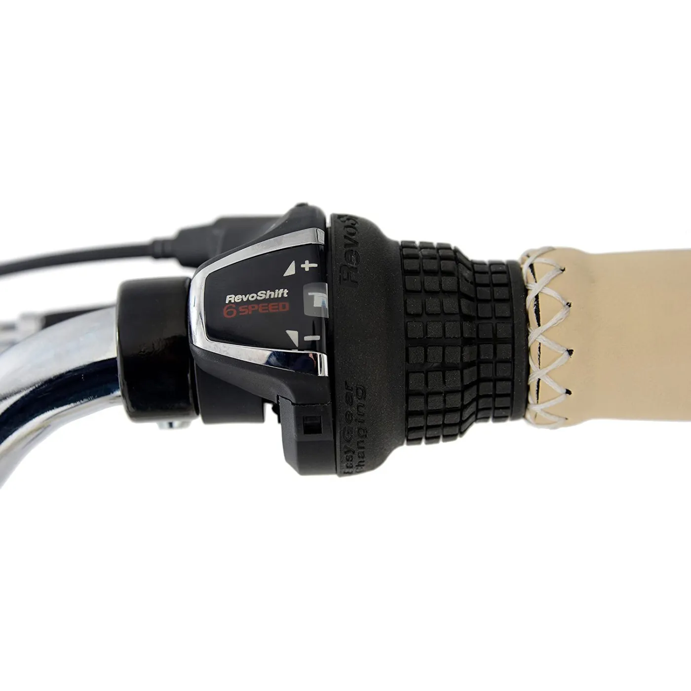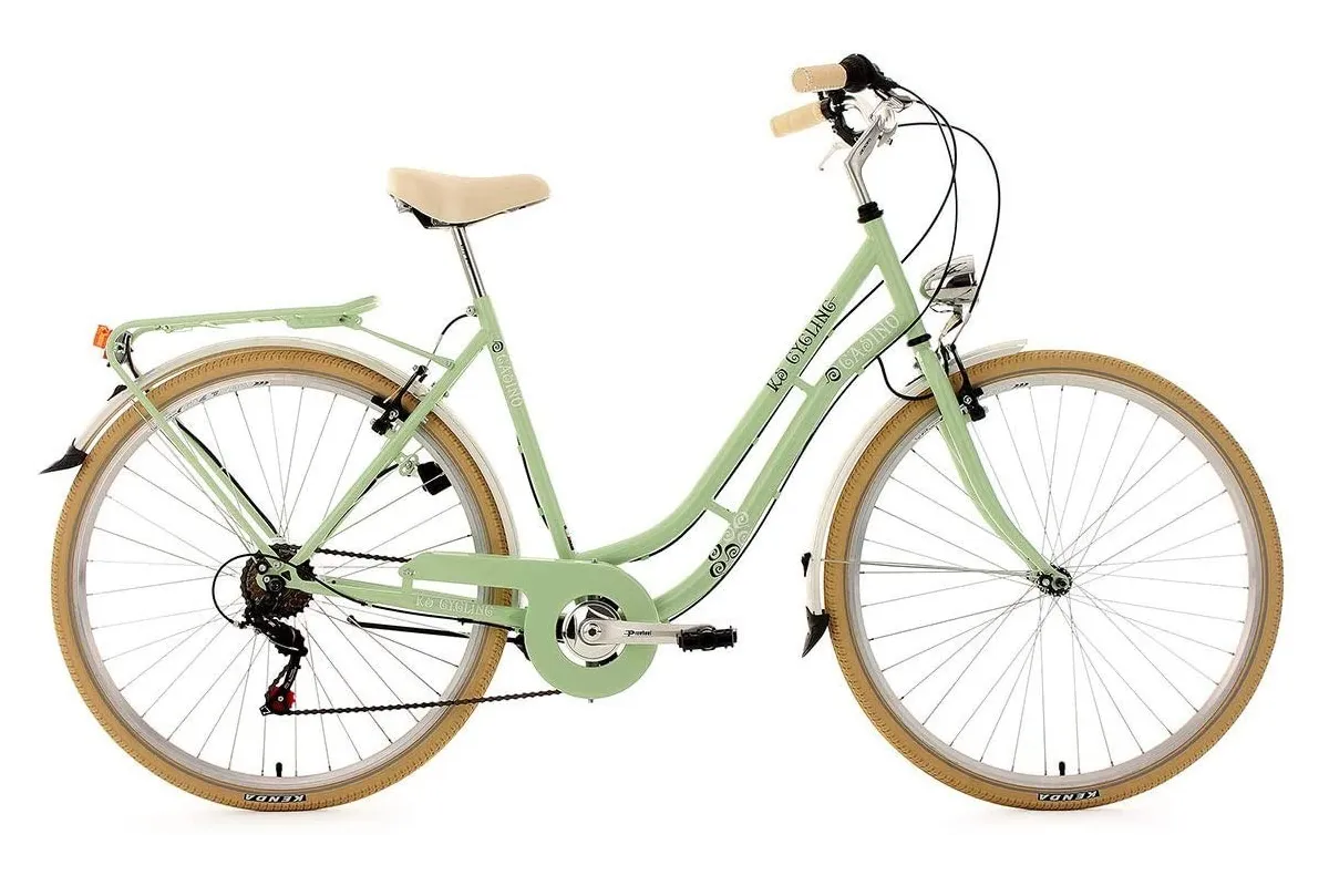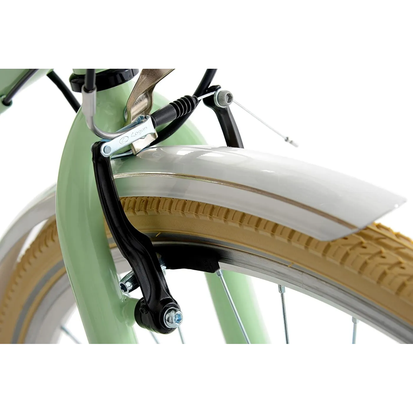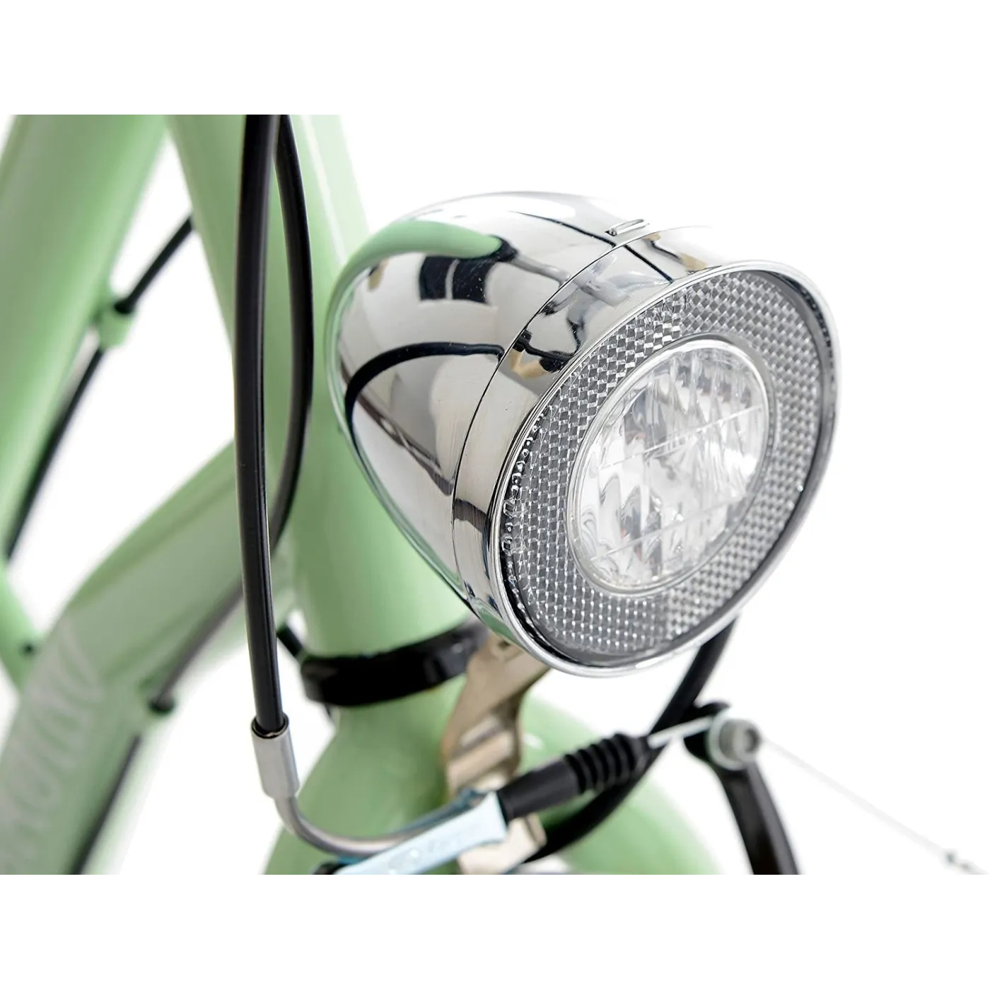 Kobiecy klasyczny rower Casino umili każdą miejską podróż! 6 biegów Shimano oraz hamulce V-brake pozwolą na komfortowe przemieszczanie się po ulicach, a reflektor zasilany przez dynamo oświetli drogę po zmroku.