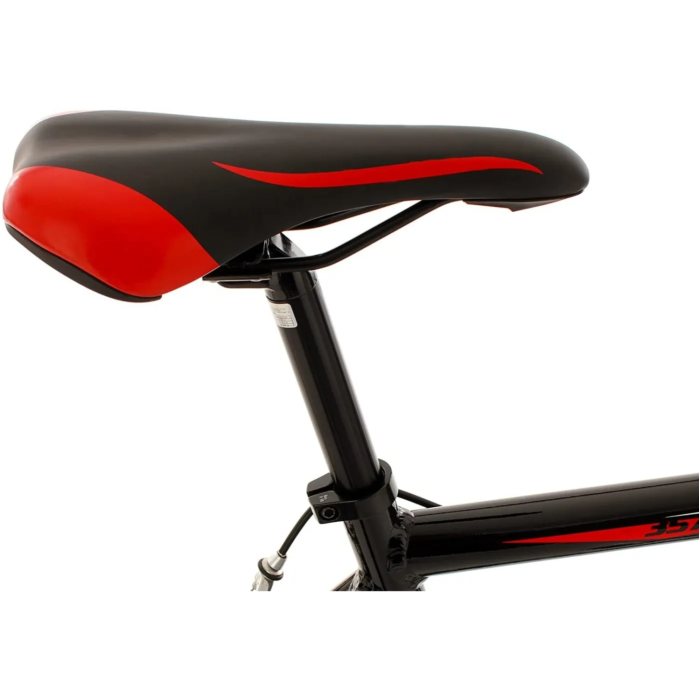 Sportowa, czarna rama z biało czerwonymi wstawkami zachwyca wyjątkowym wyglądem i na pewno przyciągnie wzrok. Całość uzupełnia wygodne siodełko o ergonomicznym kształcie.