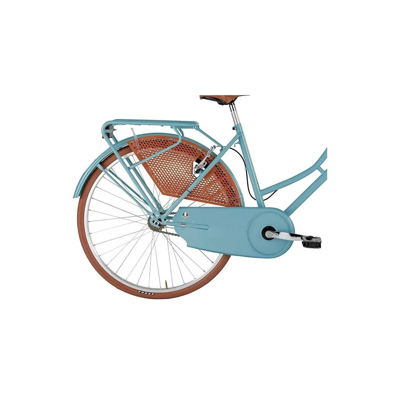 Idealnie dopracowane detale, sprawiają, że Alpina Olanda zauroczy wszystkich. Rower posiada dwa hamulce V-brake, profilowaną kierownicę w stylu retro, szerokie, wygodne siodełko, dwa bagażniki i stylową osłonę na tylne koło. Wyposażony w światła zasilane bateryjnie zapewnia bezpieczeństwo podróży nawet po zmroku. Całość utrzymana jest w pastelowych kolorach, z mocnym akcentem brązu.