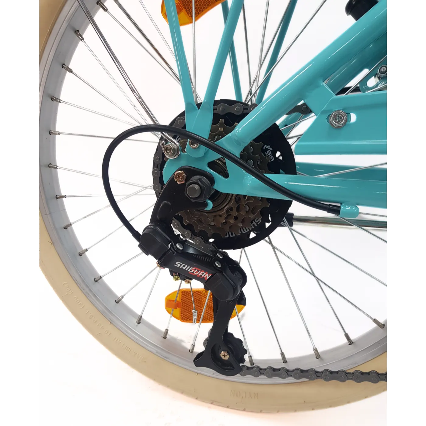 💎 KS Cycling Balloon posiada stalową ramę, która jest wytrzymała i odporna na uszkodzenia. Wyposażony jest w hamulce v-brake, które zapewniają bezpieczne i efektywne hamowanie w każdych warunkach. Komfort jazdy gwarantuje 6-biegowa przerzutka Saiguan sterowana za pomocą obrotowej manetki.