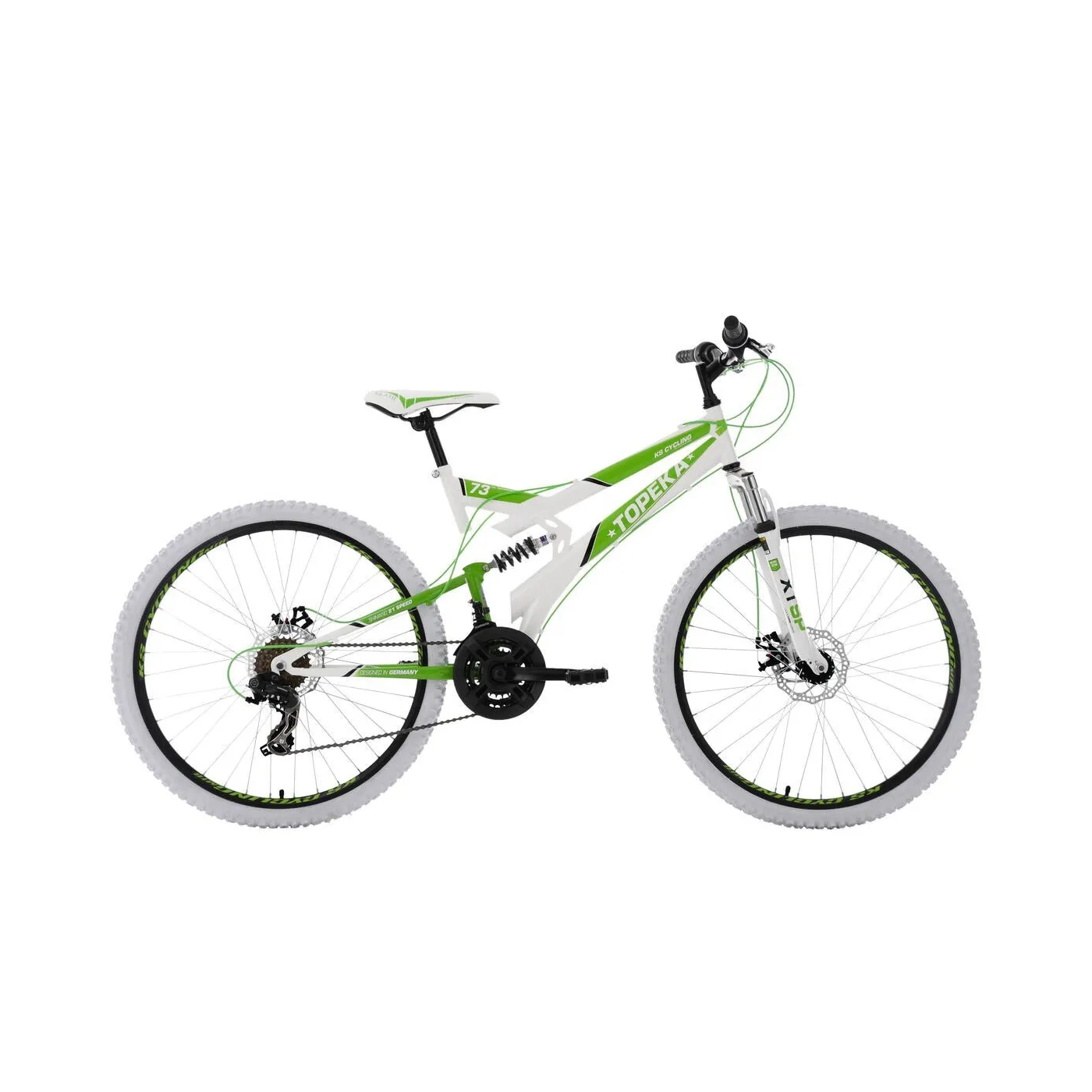 Biały kolor ramy w połączeniu z zielonymi dodatkami sprawiają, że cały rower wygląda wyjątkowo i zwraca na siebie uwagę. Dodając do tego doskonałe wyposażenie takie jak amortyzacja ramy oraz widelca, a także 21-biegowe przerzutki Shimano, otrzymujemy fantastyczny rower, który będzie inwestycją na lata.