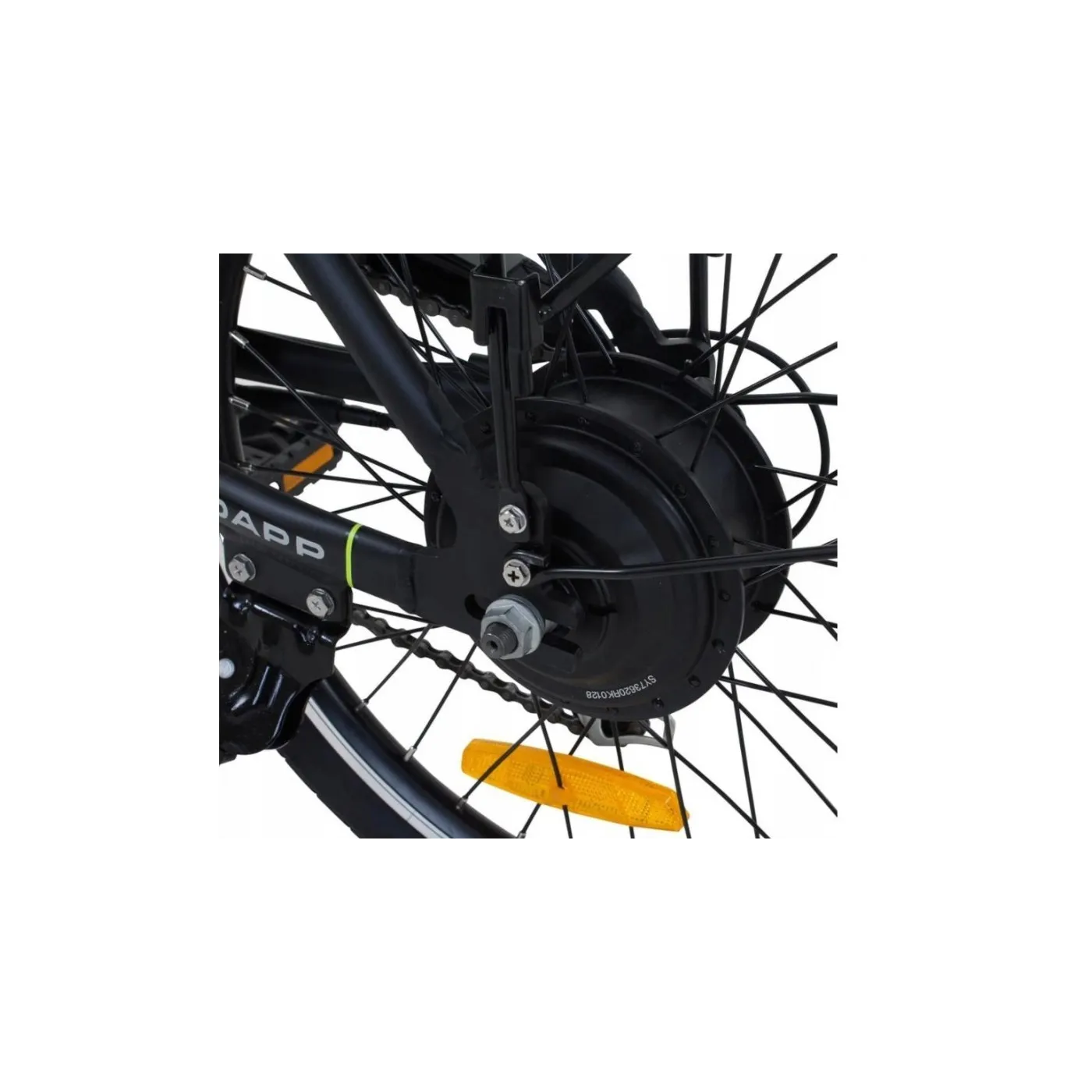 Napęd składa się z bezszczotkowego silnika w piaście koła na tylnym kole, który przy mocy 250 watów rozpędza rower do szybkiej prędkości 25 km/h. Energię czerpie z akumulatora litowo-jonowego, który jest umieszczony w ramie i można go zablokować w celu zabezpieczenia przed kradzieżą. Zasięg wynosi od 35 do 65 km, w zależności od stylu jazdy i wybranego poziomu wspomagania.
