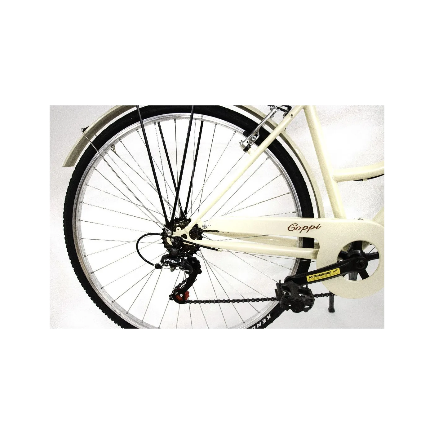 28-calowy damski rower miejski Coppi Sorrento to klasyczny rower do miasta. Jest skierowany do wszystkich, którzy szukają niezawodnego, nieskomplikowanego i łatwego w utrzymaniu i roweru miejskiego.