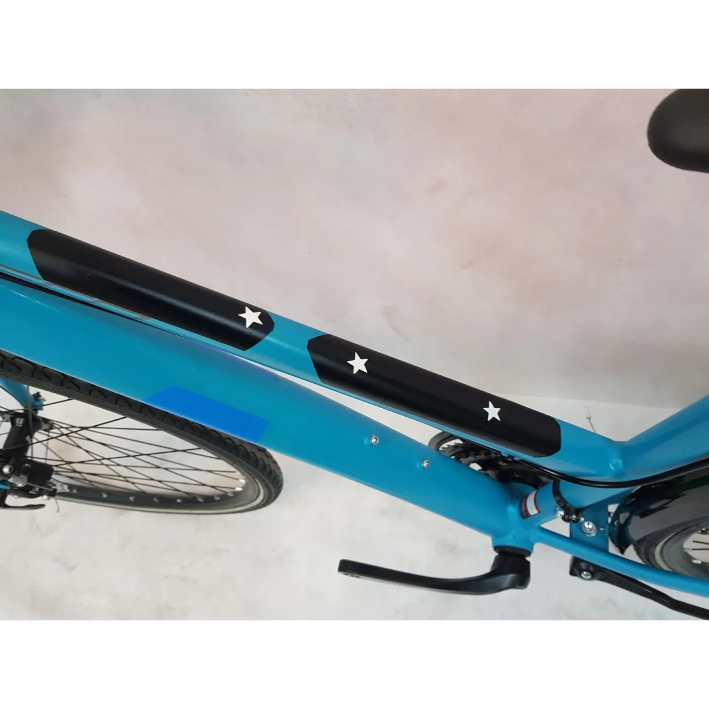 Rower zdecydowanie przyciąga wzrok swoim metaliczno-turkusowym wyglądem!