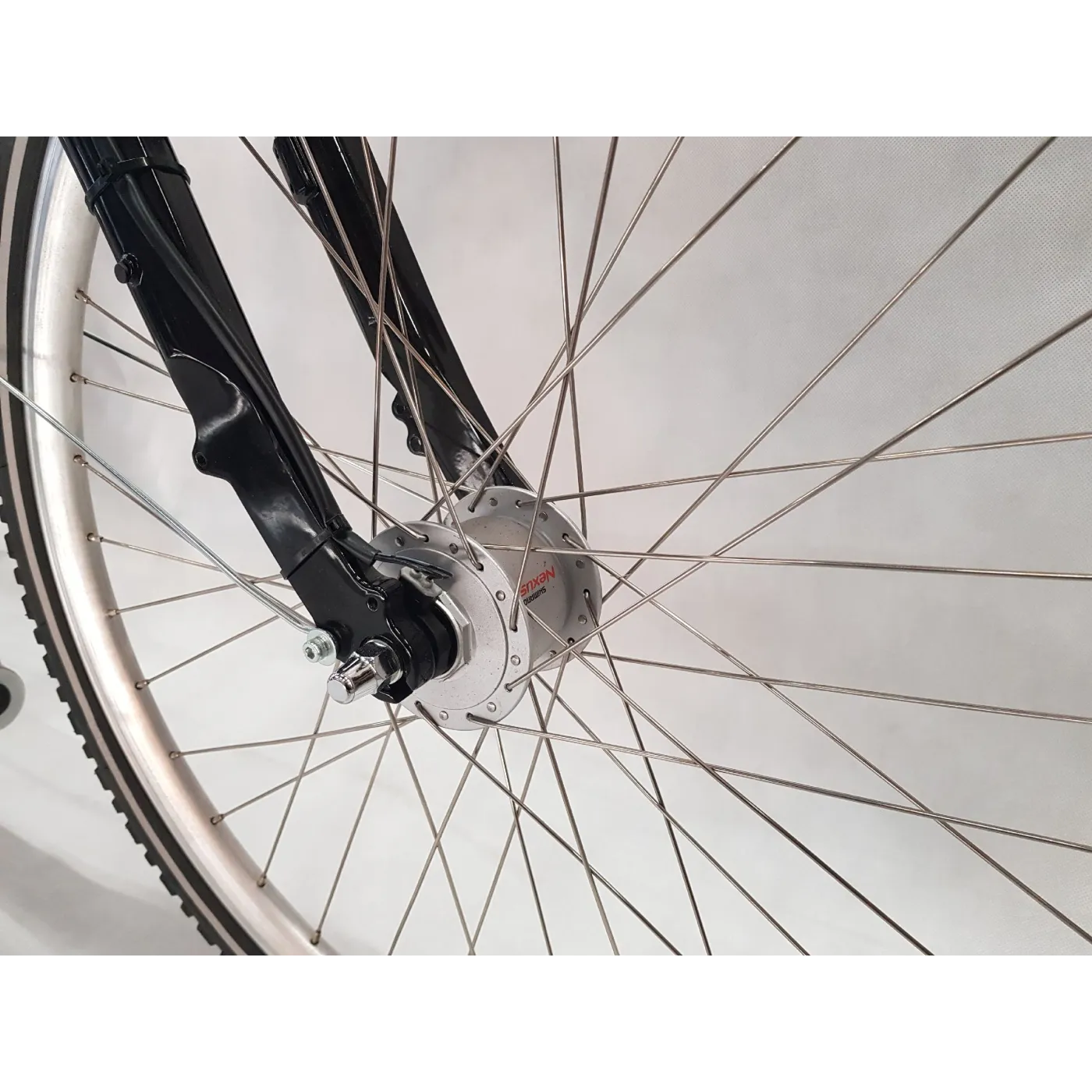 Rower ma lekką, aluminiową ramę z niskim wejściem, co ułatwia jazdę na rowerze. Jest wyjątkowo stabilny i świetnie prowadzi się pod każdym względem. Duże zakupy można łatwo przetransportować dzięki przestronnemu koszowi na bagaż. Posiada 7-biegową przerzutkę Shimano Nexus, dzięki czemu można łatwo i wygodnie dotrzeć do celu nawet przy zróżnicowanym terenie.