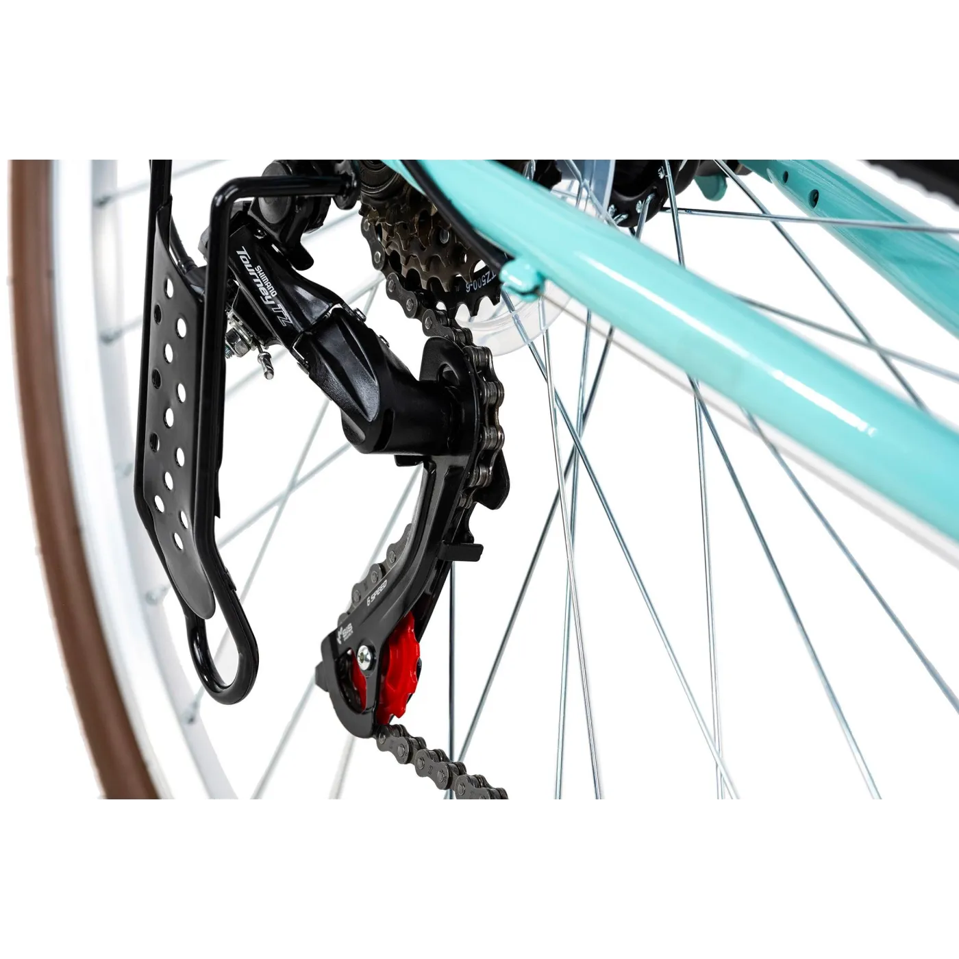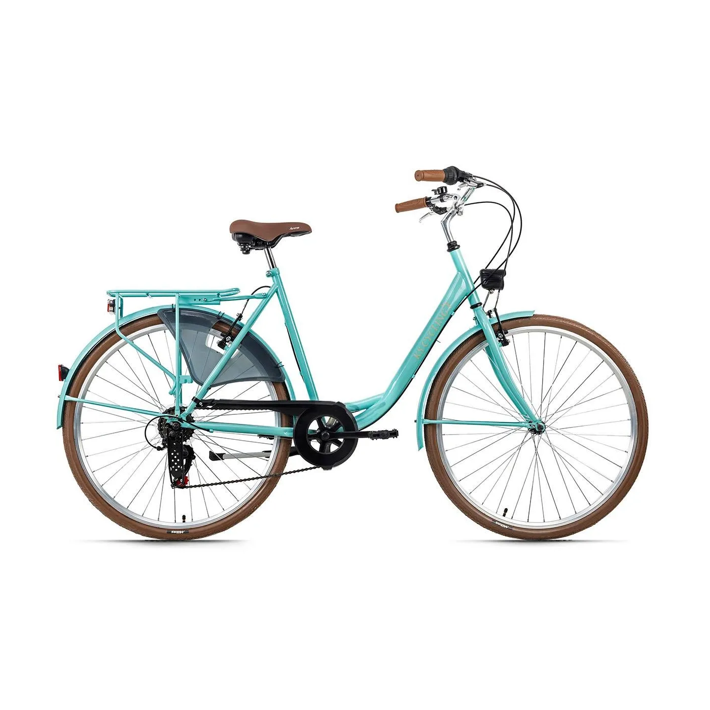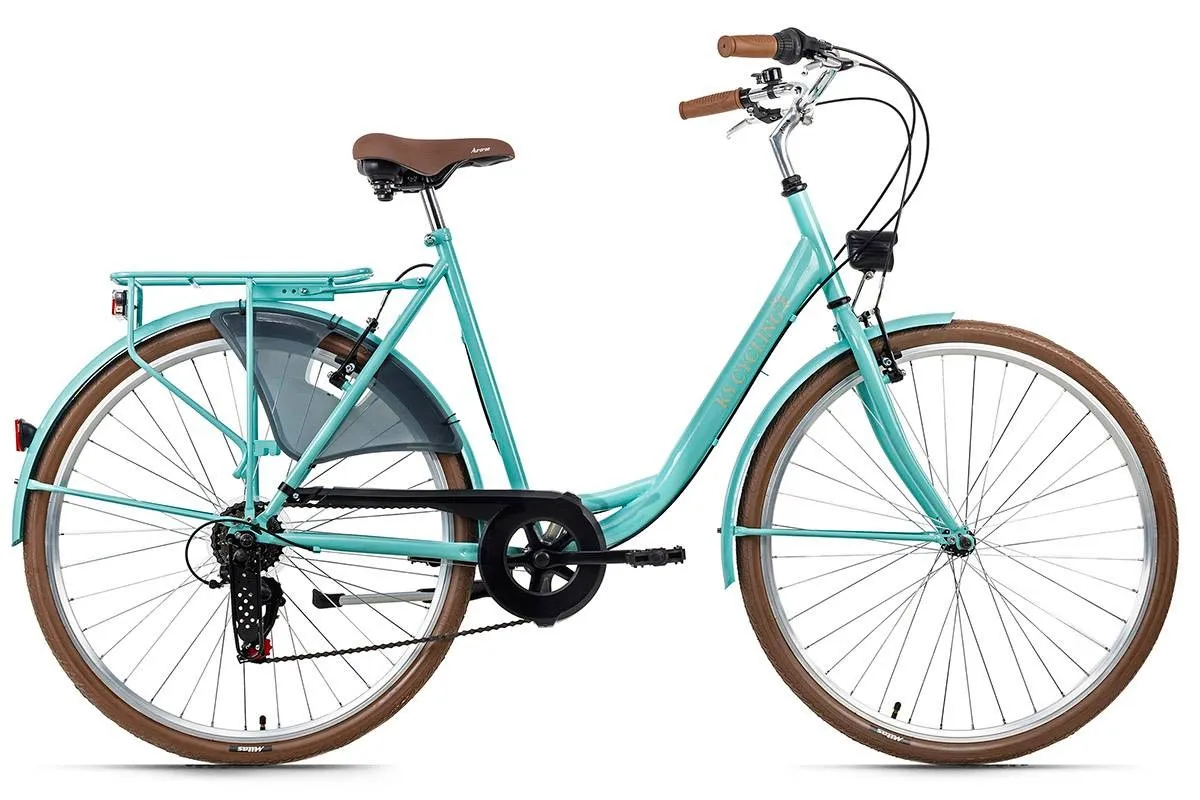 28-calowy damski rower miejski City Six to klasyczny rower do miasta. Jest skierowany do wszystkich, którzy szukają niezawodnego, nieskomplikowanego i łatwego w utrzymaniu i roweru miejskiego. Rower w klasycznym kolorze, brązowe opony, siodełko i chwyty kierownicy nadają mu elegancki wygląd w retro stylu.