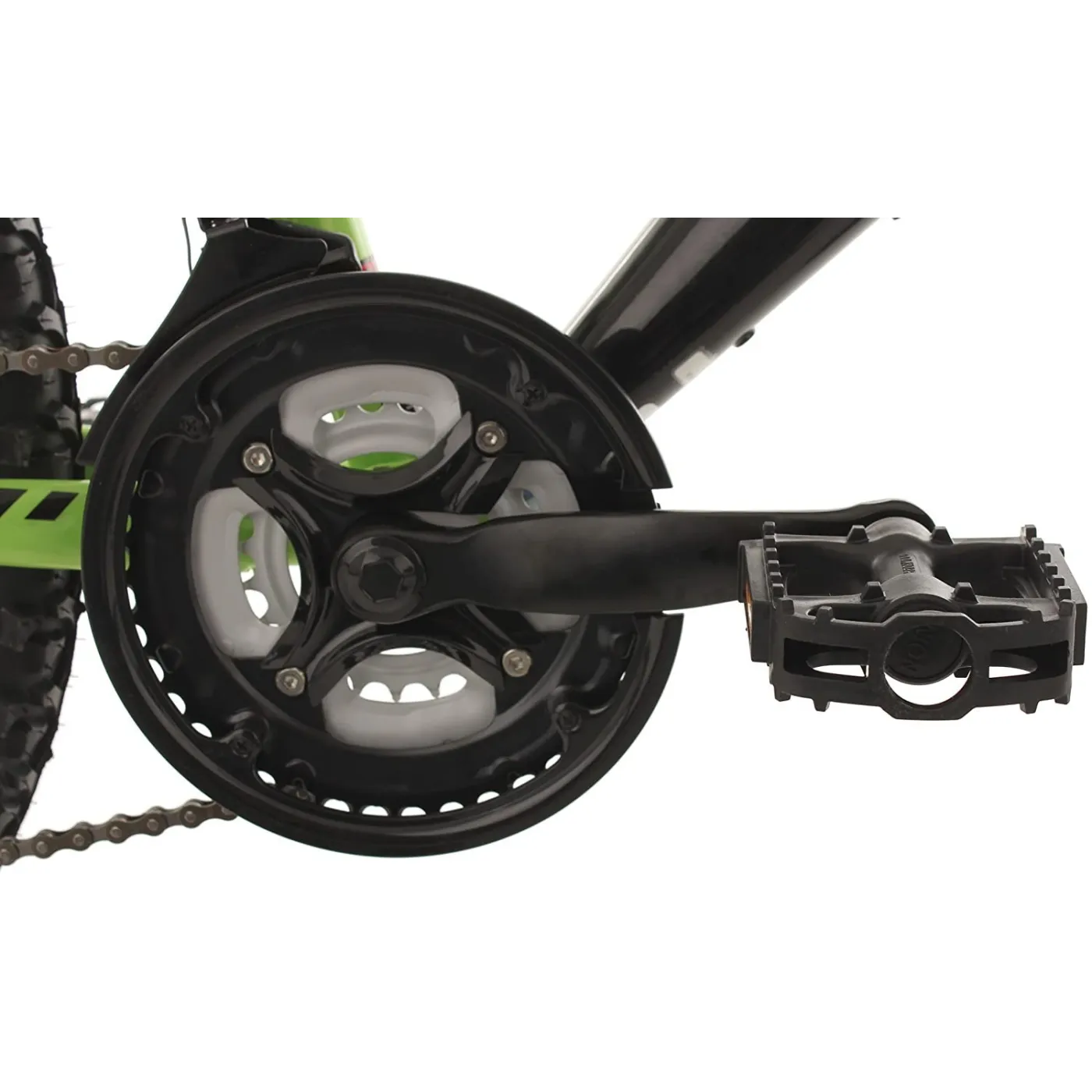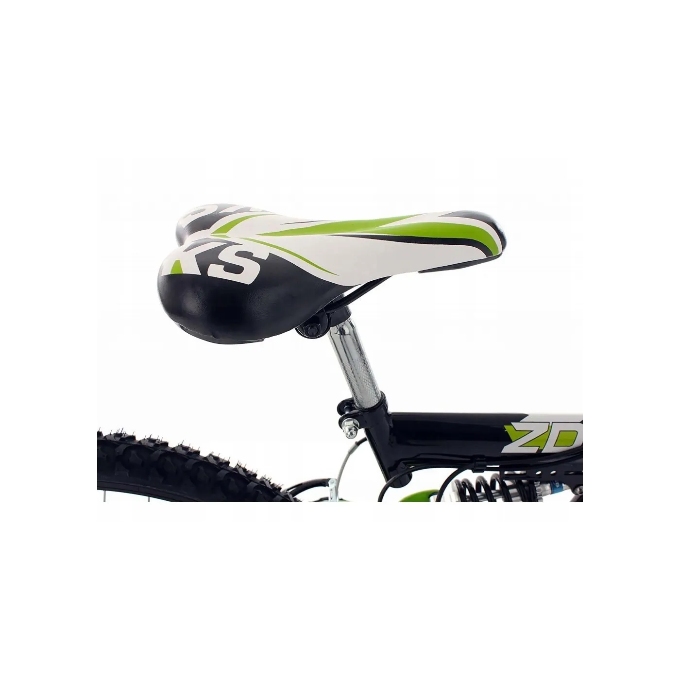 Łączy w sobie oryginalną kolorystykę z funkcjonalnością. Zielono-czarno-biały kolor na pewno przypadnie do gustu każdemu dziecku a dzięki amortyzacji ramy i widelca zachowuje doskonałe właściwości jezdne. 18 przerzutek Shimano oraz manetki obrotowe zadowolą każdego, małego rowerzystę. To świetny rower o sportowym charakterze i świetny partner do codziennych zabaw.
