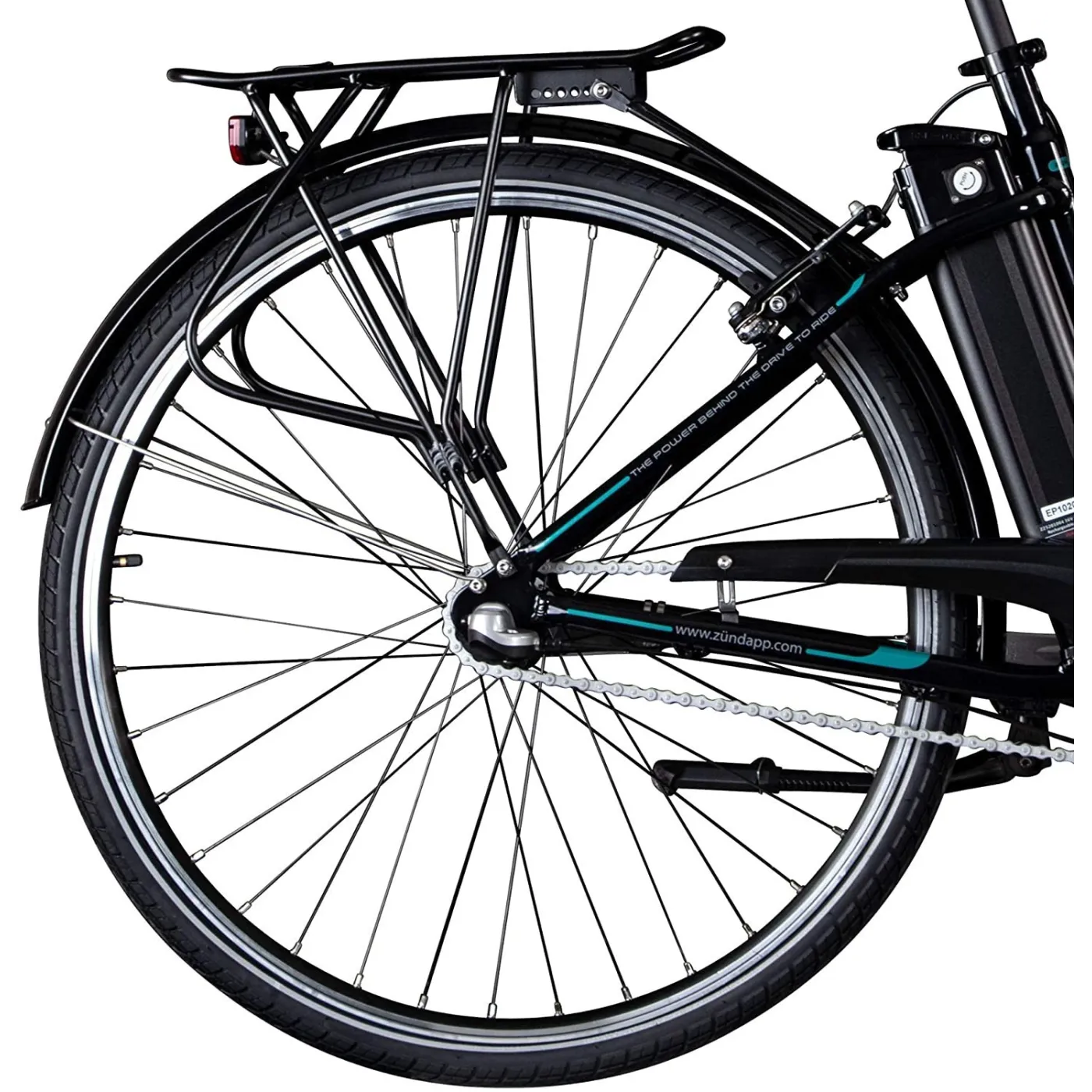 Jako rower użytkowy do miasta, Zündapp Z510 jest idealnie przystosowany do ruchu i codziennego użytku. Przede wszystkim jest to oświetlenie zgodne z StVZO ze światłami LED AXA z przodu i z tyłu. Bagażnik i przedni kosz, osłona łańcucha, błotniki i stopka boczna są również częścią roweru. To znaczy: nie musisz już kupować akcesoriów, możesz od razu zacząć jeździć na rowerze!