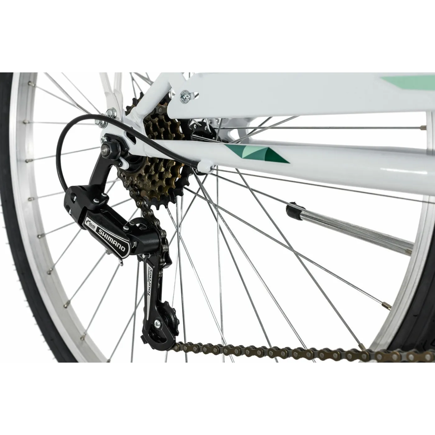 Możesz swobodnie przemierzać ulice, dzięki 6-biegowej przerzutce, która doskonale sprawdzi się na prostych drogach oraz lekkich wzniesieniach. Dzięki 26-calowym kołom i niewielkim rozmiarom ramy jest odpowiedni również dla mniejszych rowerzystek.