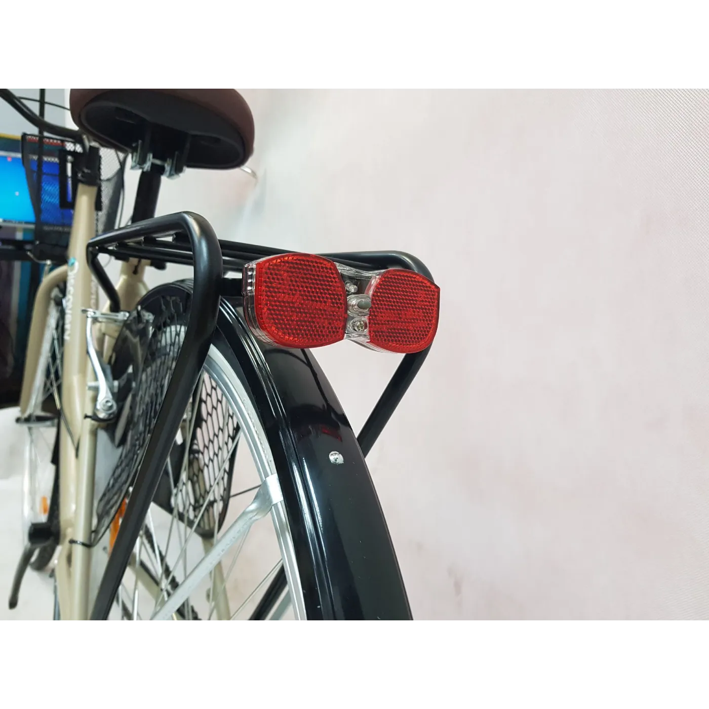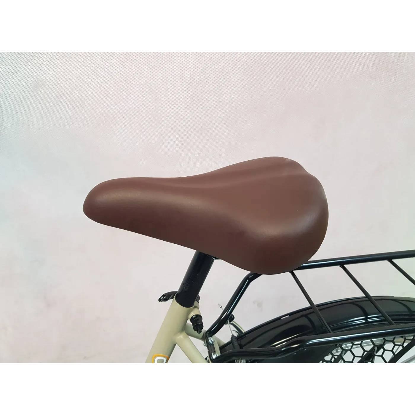 Idealnie dopracowane detale, sprawiają, że zauroczy wszystkich. Rower posiada dwa hamulce V-brake, profilowaną kierownicę w stylu retro, szerokie, wygodne siodełko oraz bagażnik i koszyk. Całość utrzymana jest w przyciągającym wzrok, pastelowym kolorze z brązowymi akcentami w postaci uchwytów kierownicy i siodełka.