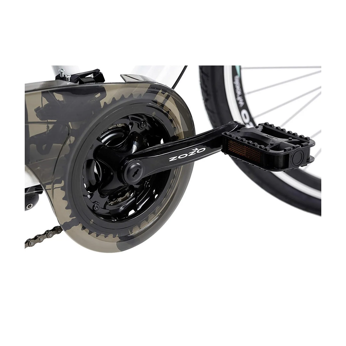 Rama w klasycznym białym kolorze oraz subtelne turkusowe naklejki sprawiają, że ten jednoślad przyciąga wzrok. Na praktycznym tylnym bagażniku oraz można bezpiecznie przewieźć zakupy czy bagaż podczas każdej przejażdżki.