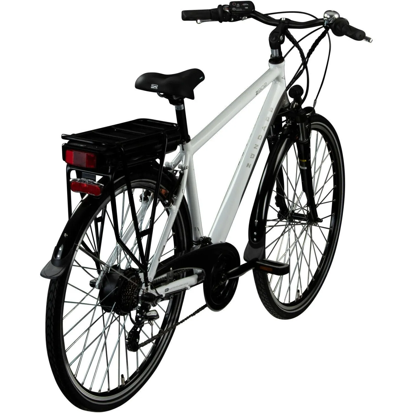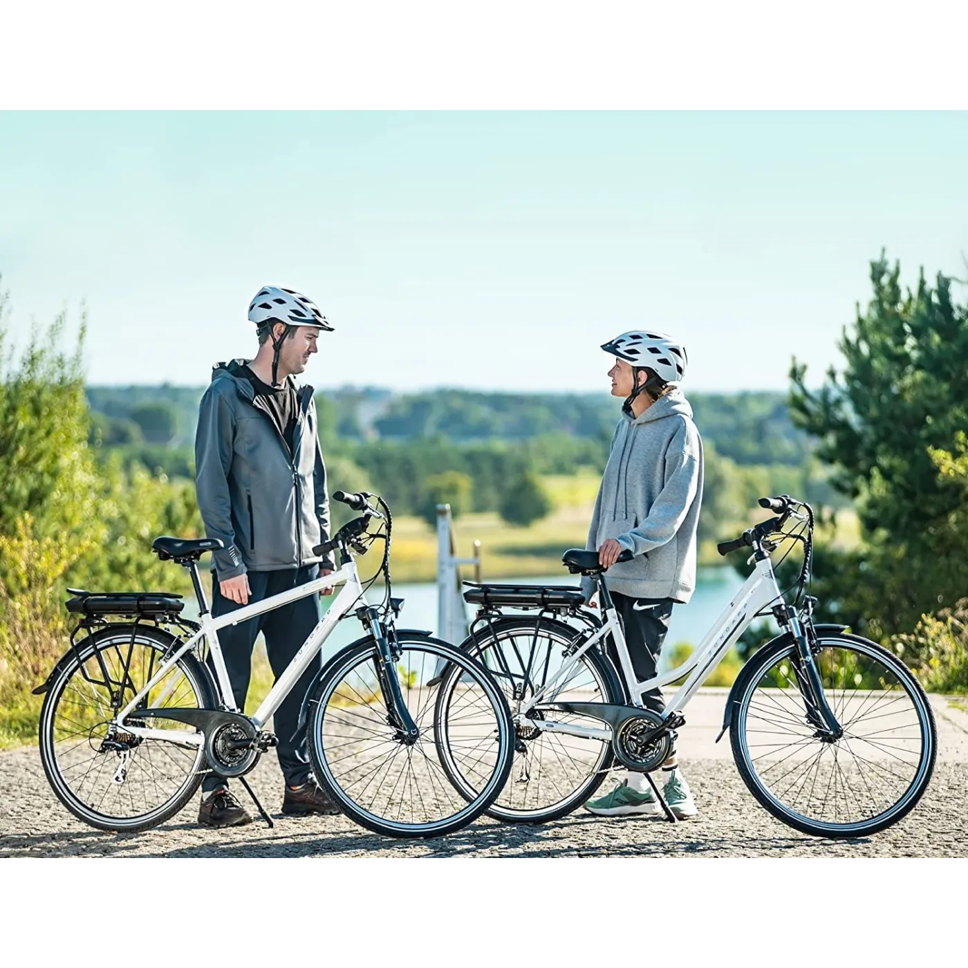 Podstawową konstrukcją e-roweru jest lekka rama diamentowa wykonana z aluminium, która jest połączona z widelcem amortyzowanym o skoku zawieszenia 63 mm. W połączeniu z kierownicą miejską z tylną korbą i mostkiem z regulacją kąta, rower zapewnia wygodną pozycję siedzącą, która pozwala jeździć przez długi czas bez objawów zmęczenia. Możesz też długo wytrzymać na wygodnym siodle.