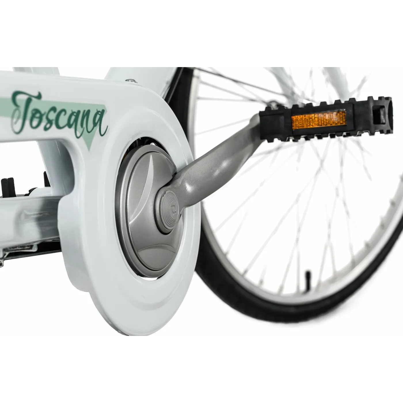 Czysta biel ramy w 26-calowym rowerze TOSCANA z KS Cycling sprawia, że wygląda klasycznie i nadaje mu prawdziwej elegancji.