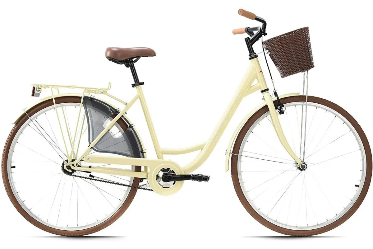 28-calowy damski rower miejski ZEELAND to klasyczny rower do miasta pozbawiony zbędnych Jest skierowany do wszystkich, którzy szukają niezawodnego, nieskomplikowanego i łatwego w utrzymaniu i roweru miejskiego. Rower w jasnych, pastelowych kolorach przywodzi na myśl wiosenne i letnie dni, natomiast brązowe opony, siodełko i chwyty kierownicy nadają rowerowi elegancki wygląd w retro stylu.
