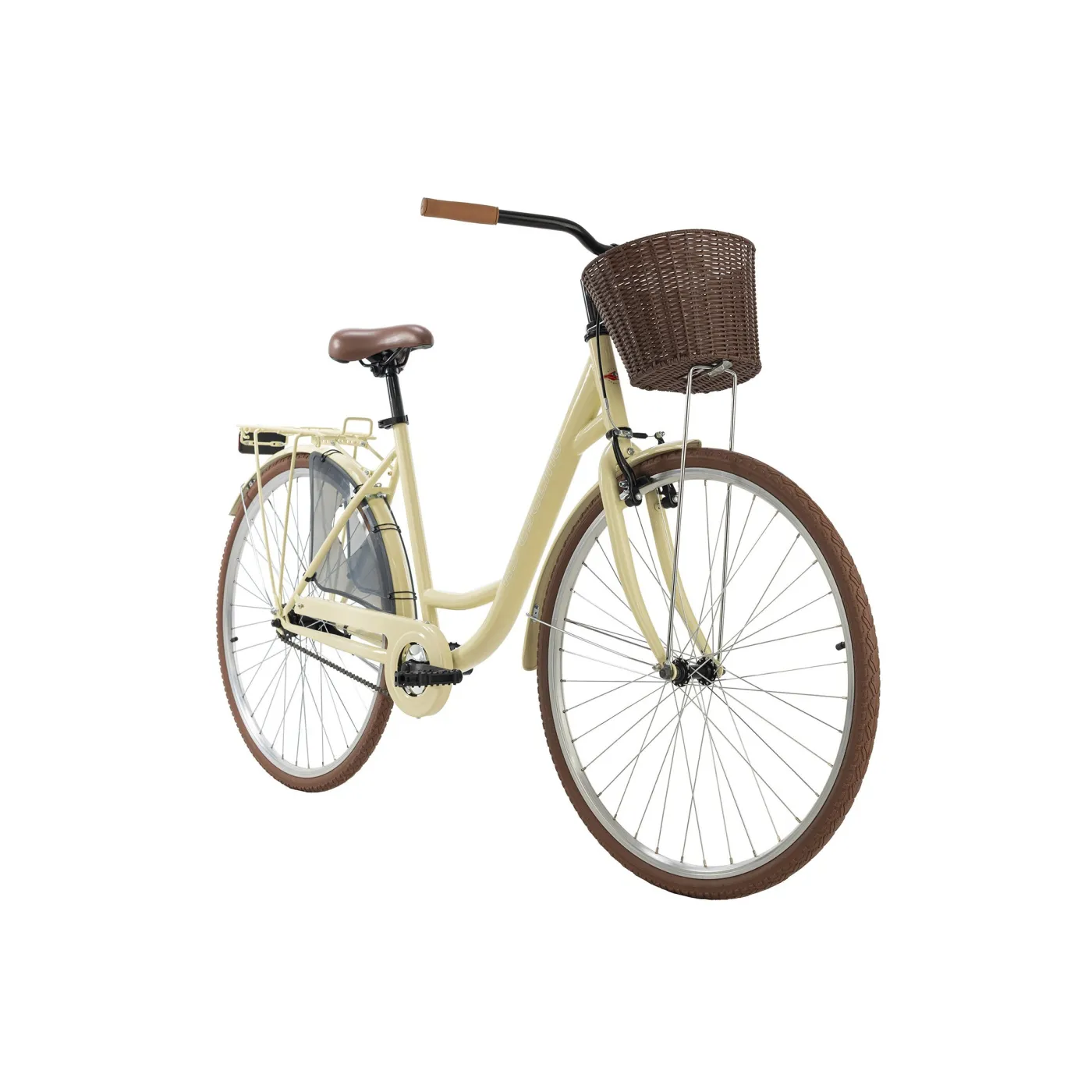 28-calowy damski rower miejski ZEELAND to klasyczny rower do miasta pozbawiony zbędnych Jest skierowany do wszystkich, którzy szukają niezawodnego, nieskomplikowanego i łatwego w utrzymaniu i roweru miejskiego. Rower w jasnych, pastelowych kolorach przywodzi na myśl wiosenne i letnie dni, natomiast brązowe opony, siodełko i chwyty kierownicy nadają rowerowi elegancki wygląd w retro stylu.