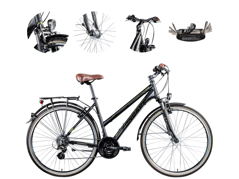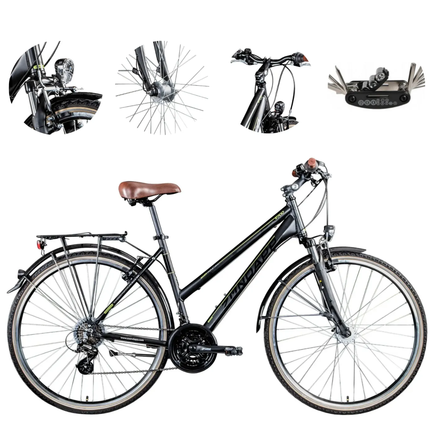 ✔️ Rower jeździ na łatwych w prowadzeniu oponach o wymiarach 700c x 40c, których profil pozwala na dużą prędkość na asfalcie i nadal zapewnia wystarczającą przyczepność na zakrętach. Zündapp T700 ma szeroką gamę funkcji, dzięki czemu możesz natychmiast rozpocząć jazdę i nie musisz kupować dodatkowych akcesoriów.