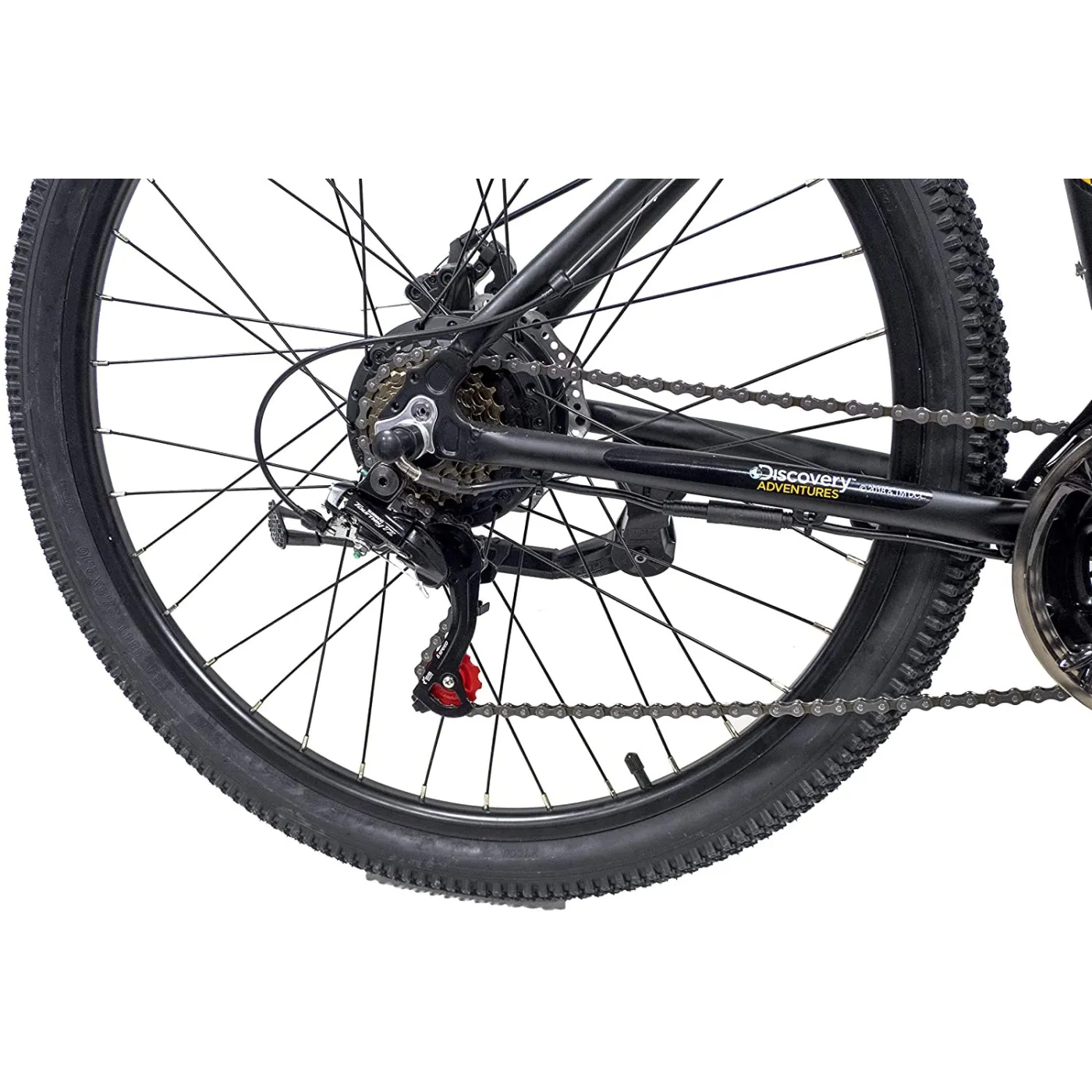 Napęd w tylnej piaście wspomaga jazdę w pięciu trybach, a pojemny akumulator 10.4 Ah daje możliwość przejechania nawet do 70 km na jednym ładowaniu (w zależności od warunków i trybów jazdy). Rower wyposażony jest w 21 biegów od Shimano oraz tarczowe hamulce mechaniczne, które zapewniają bezpieczeństwo hamowania w trudnych warunkach. Dodatkowo rower posiada podnóżkę, która ułatwia postoje na trasie.