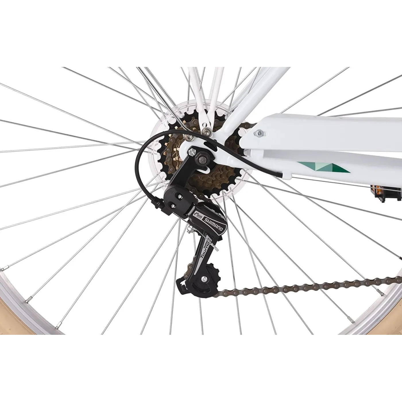 Rower miejski Toscana świetnie sprawdzi się jako codzienny transport np. do szkoły czy pracy, ale także krótkie wycieczki rekreacyjne. Wyposażony w hamulce v-brake i 6 biegów dostosuje się do zmian terenu. Dodatkowo zawiera wszystkie niezbędne akcesoria potrzebne do codziennej jazdy, np. bagażnik, błotniki i osłonę na łańcuch oraz oświetlenie zasilane bateryjnie.