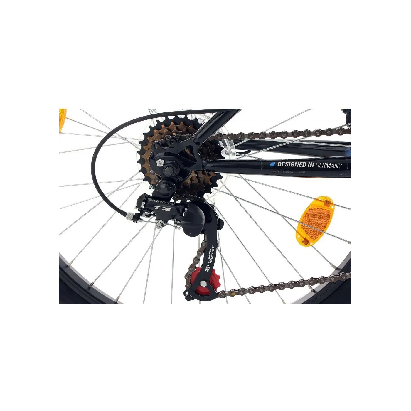 Doskonały rower górski dla chłopca lub dziewczynki, idealnie sprawdzi się jako prezent, z którego nie sposób się nie ucieszyć. Amortyzowana rama, 20 calowe opony, hamulce typu V-brake (przednie i tylne) oraz 6 biegów! Do tego w standardowym wyposażeniu znajduje się dzwonek, odblaski na kołach, oświetlenie napędzane dynamo oraz błotniki.
