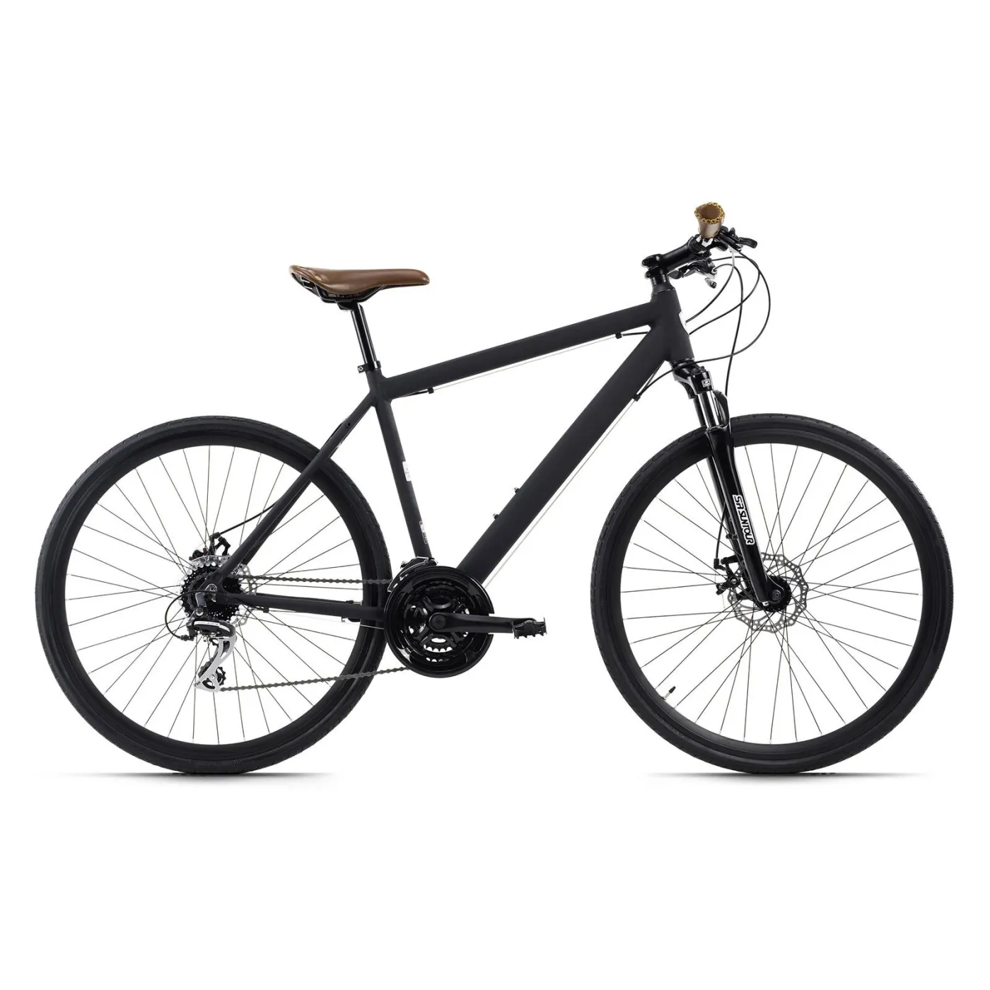 Lekki, aluminiowy, jest wyposażony w 24-biegową przerzutkę. Mechaniczne hamulce tarczowe gwarantują bezpieczne hamowanie, a amortyzowany widelec SR Suntour zapewnia doskonały kontakt z podłożem na wybojach.