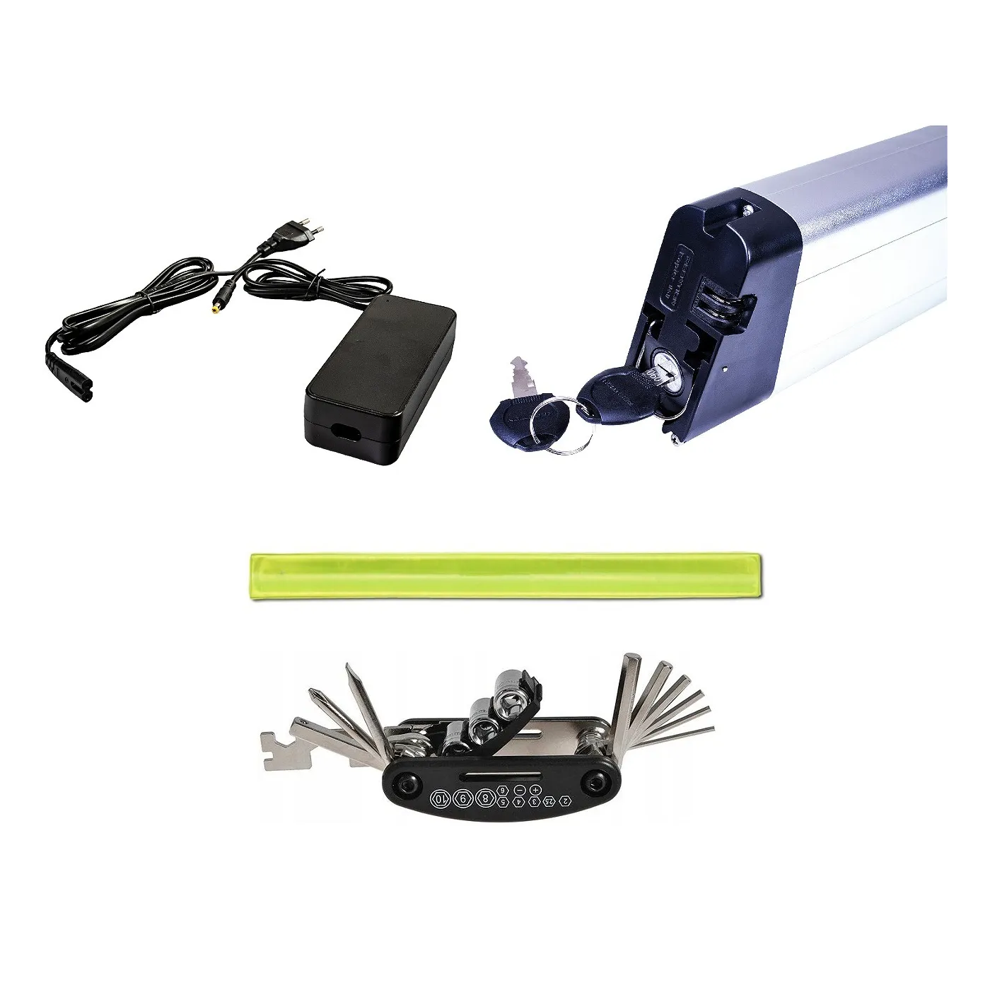 ⚡ Napęd składa się z bezszczotkowego silnika w piaście koła na tylnym kole, który przy mocy 250 watów rozpędza rower do prędkości 25 km/h. Energię czerpie z akumulatora litowo-jonowego, który jest umieszczony w ramie i można go zablokować w celu zabezpieczenia przed kradzieżą. Dodatkowo, bateria o mocy 270Wh pozwoli Ci pokonać nawet do 60 km!