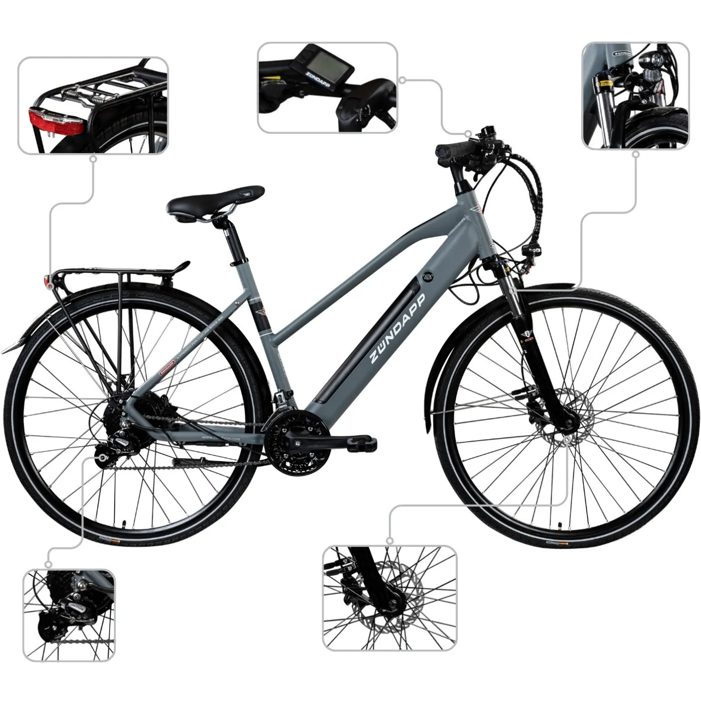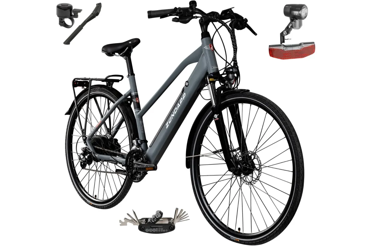💡 Jako rower na co dzień Zündapp Z810 jest już doskonale wyposażony. Oświetlenie AXA z przodu i z tyłu sprawia, że e-rower nadaje się do ruchu drogowego. Błotniki chronią przed brudem drogowym, a osłona łańcucha zapobiega zaplątaniu się odzieży w łańcuch.