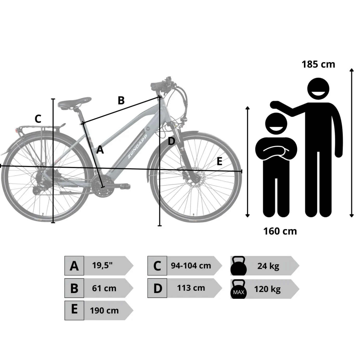 ⚖️Lekka trapezowa rama wykonana z aluminium zapewnia najlepsze właściwości jezdne i całkowicie ukrywa akumulator w dolnej rurze. Tutaj jest optymalnie chroniony przed brudem i kradzieżą. W podwoziu zainstalowano widelec amortyzowany SR Suntour SF14 NEX DS MLO o skoku 63 mm, który można zablokować za pomocą blokady podczas jazdy pod górę i można go dostosować do własnych potrzeb dzięki regulowanemu naprężeniu wstępnemu. Regulowany pod kątem wspornik kierownicy umożliwia precyzyjne dopasowanie pozycji kierownicy do kierowcy. Sama kierownica ma szerokość 610 mm i przesunięcie o 33°, co nie męczy nadgarstków podczas długich podróży.