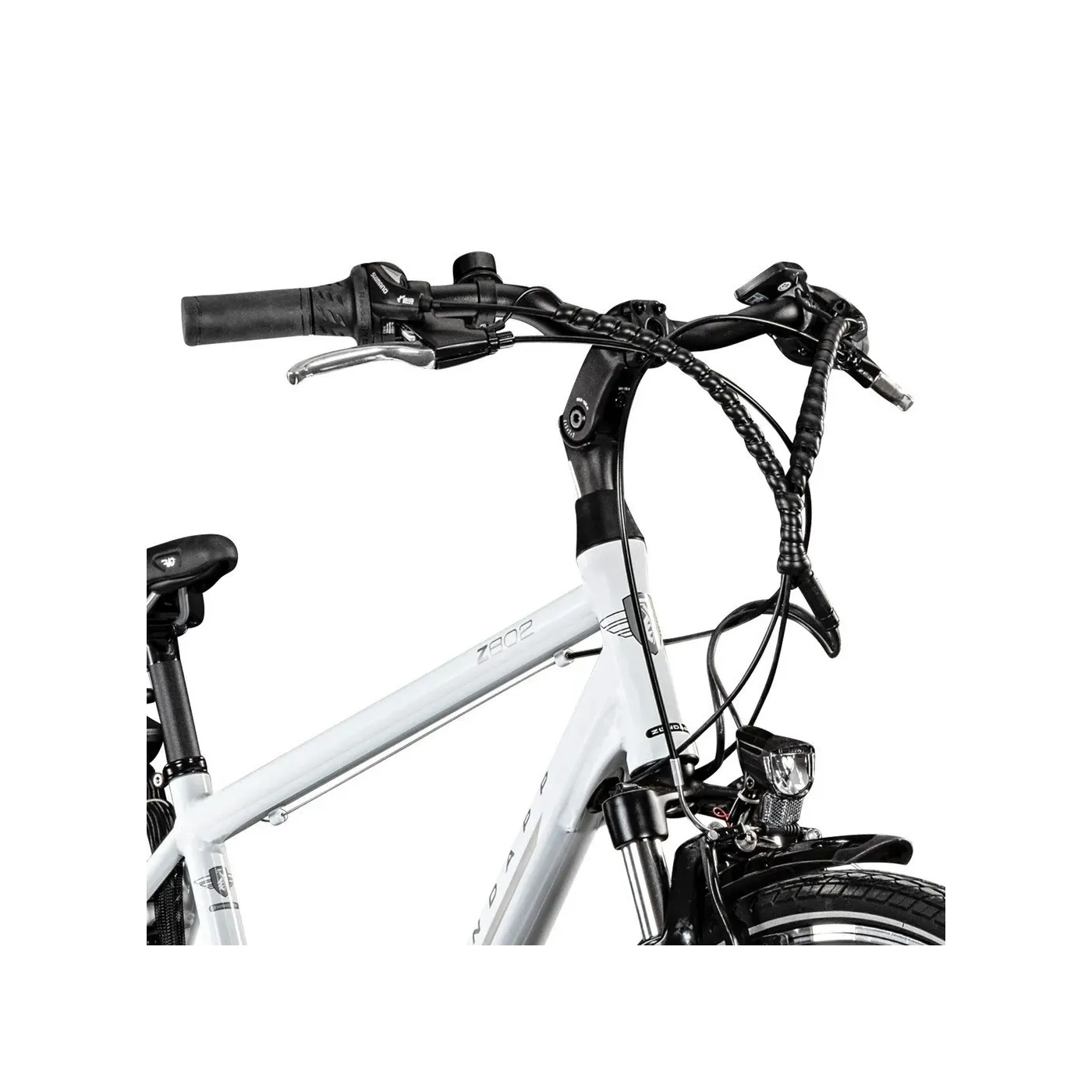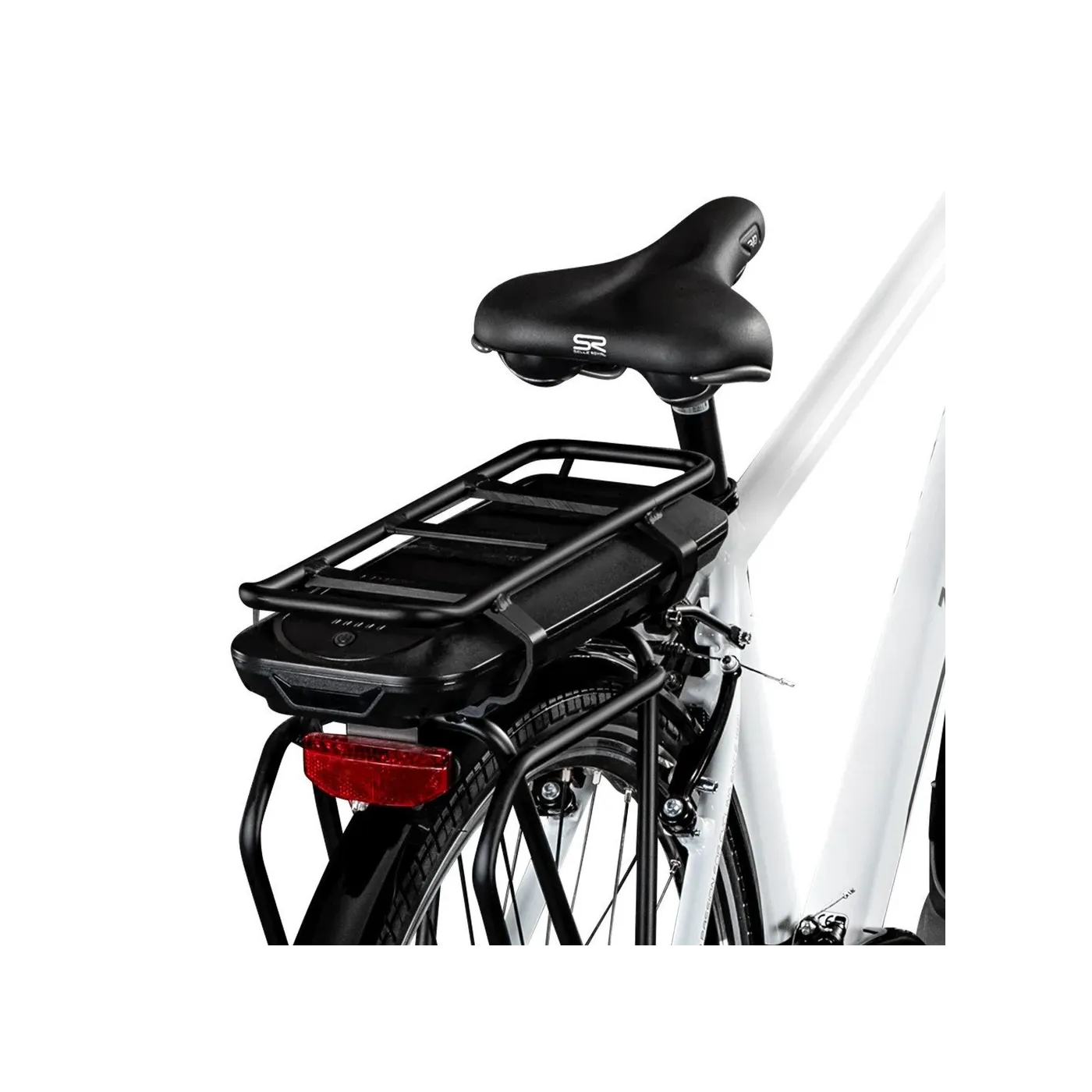 Podstawową konstrukcją e-roweru jest lekka rama diamentowa wykonana z aluminium, która jest połączona z widelcem amortyzowanym o skoku zawieszenia 63 mm. W połączeniu z kierownicą miejską z tylną korbą i mostkiem z regulacją kąta, rower zapewnia wygodną pozycję siedzącą, która pozwala jeździć przez długi czas bez objawów zmęczenia. Możesz też długo wytrzymać na wygodnym siodle.