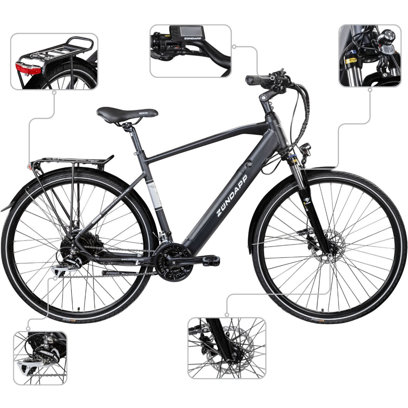 💡 Jako rower na co dzień Zündapp Z810 jest już doskonale wyposażony. Oświetlenie AXA z przodu i z tyłu sprawia, że e-rower nadaje się do ruchu drogowego. Błotniki chronią przed brudem drogowym, a osłona łańcucha zapobiega zaplątaniu się odzieży w łańcuch.