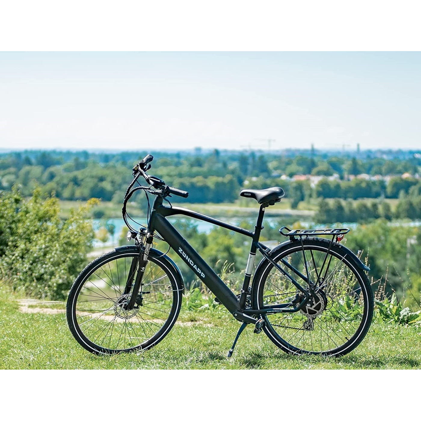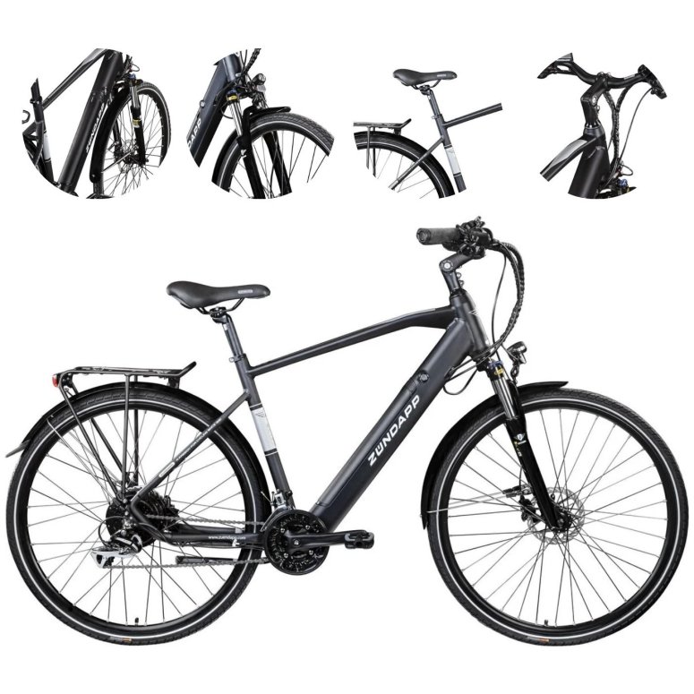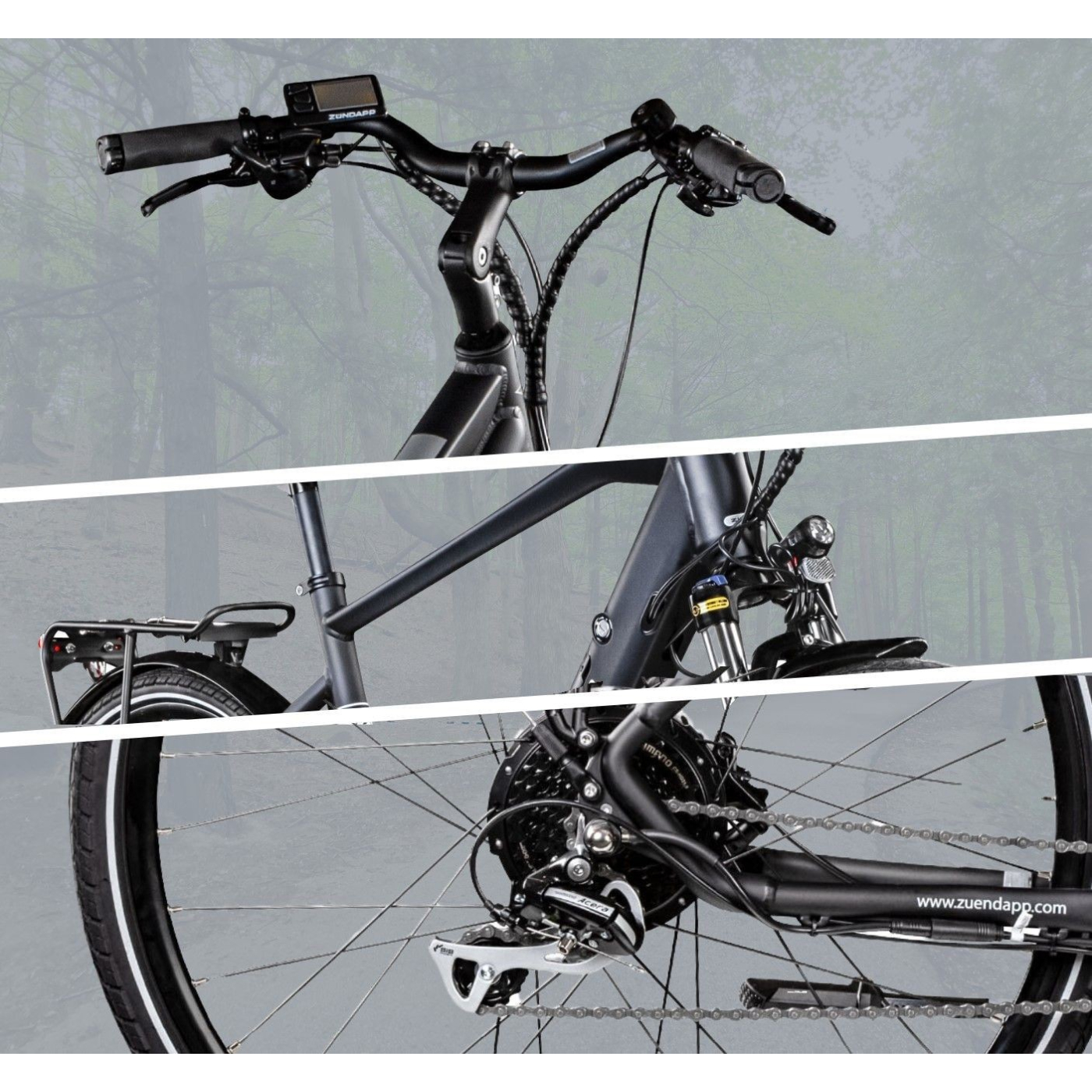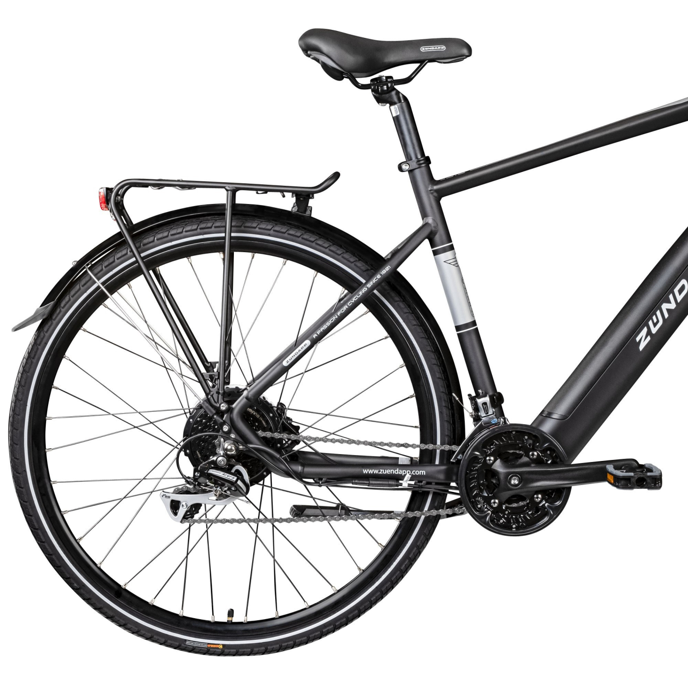 💡 Jako rower na co dzień Zündapp Z810 jest już doskonale wyposażony. Oświetlenie AXA z przodu i z tyłu sprawia, że e-rower nadaje się do ruchu drogowego. Błotniki chronią przed brudem drogowym, a osłona łańcucha zapobiega zaplątaniu się odzieży w łańcuch.