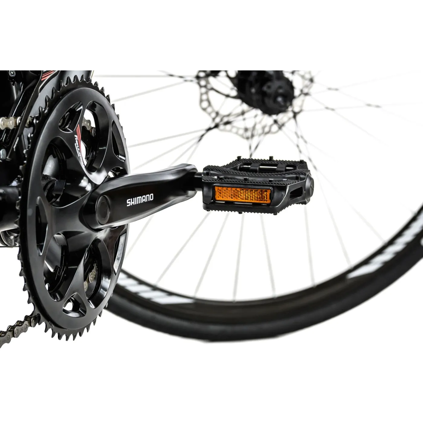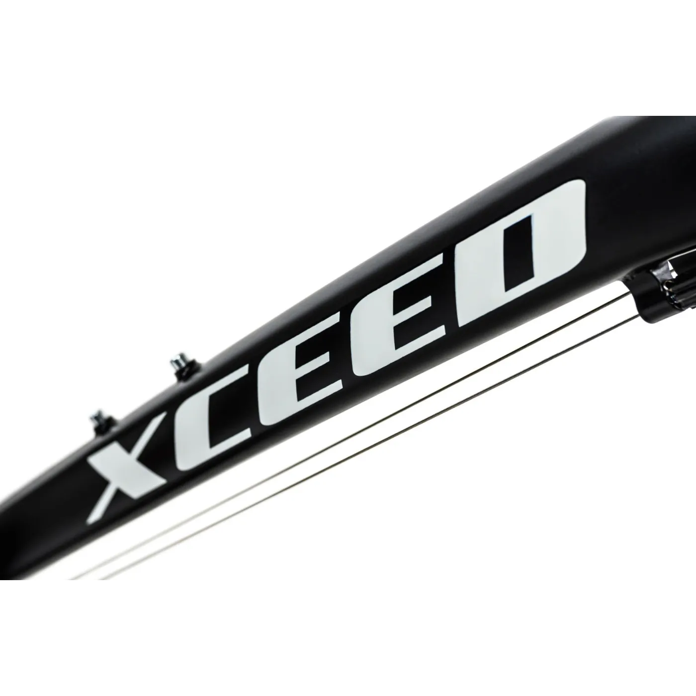 XCEED ma 14 biegów, które można łatwo zmieniać za pomocą precyzyjnej i wytrzymałej grupy SHIMANO Tourney. Stabilna aluminiowa rama i wiele innych aluminiowych części zmniejsza wagę do zaledwie około 13 kg.
