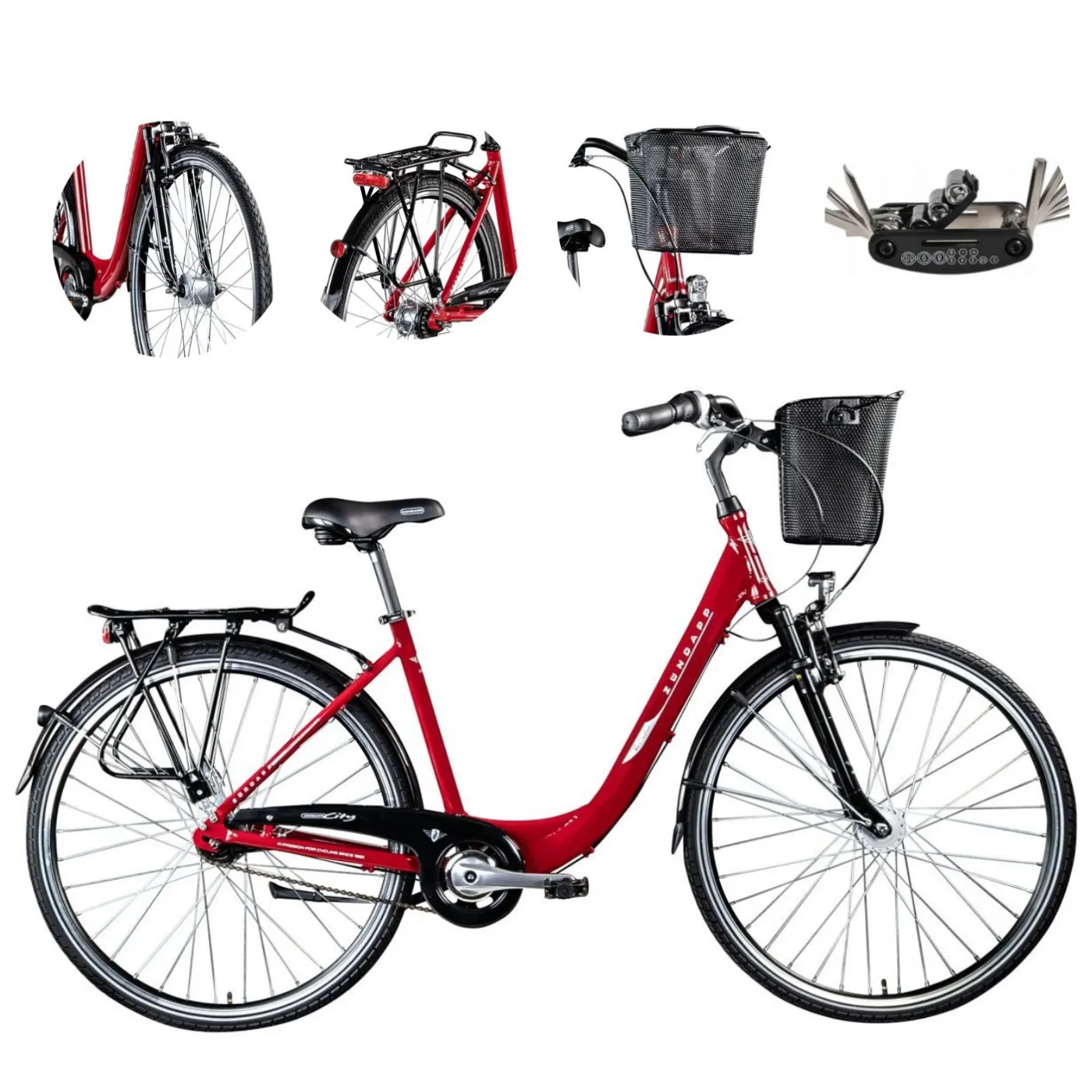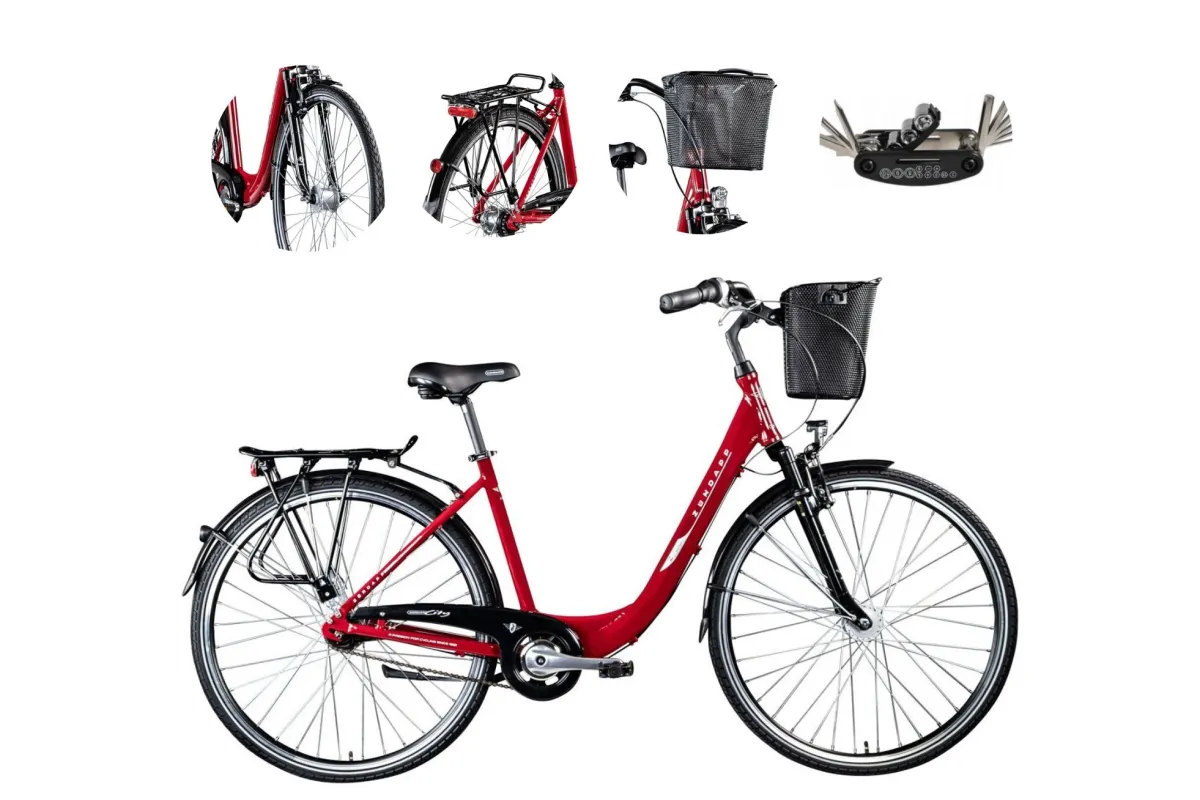 ✨ Błotniki chronią przed brudem drogowym, osłona łańcucha, bagażnik i przedni kosz zapewniają dużo miejsca do przechowywania, na przykład na zakupy. Kosz jest przymocowany do kierownicy za pomocą systemu zatrzaskowego i można go wyjąć w kilka sekund i łatwo zabrać ze sobą dzięki rączce.
