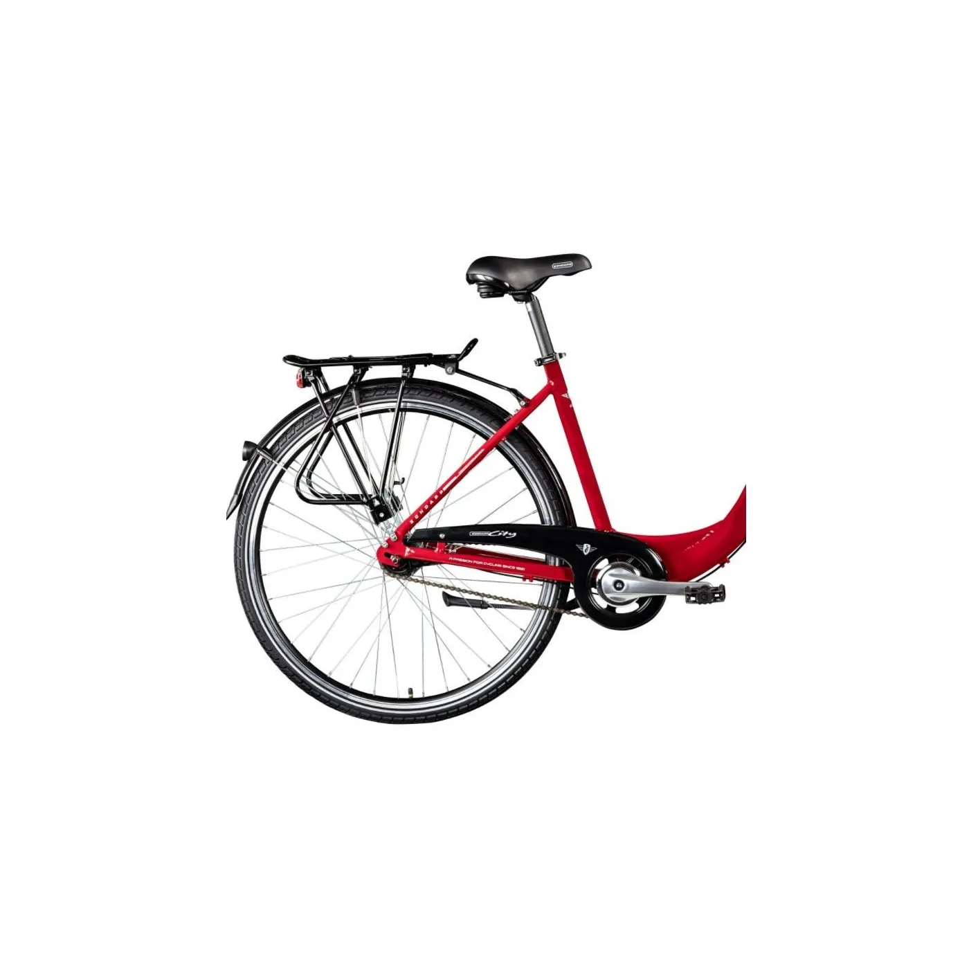 👉 Podstawą roweru jest solidna stalowa rama z niskim progiem, która umożliwia również wygodne wsiadanie i zsiadanie osobom o ograniczonej sprawności ruchowej. W połączeniu z zakrzywioną do tyłu kierownicą miejską sprzyja wyprostowanej pozycji siedzącej, która pozwala jeździć na rowerze przez długi czas bez objawów zmęczenia. Ponadto, siedzenie w pozycji wyprostowanej zapewnia dobrą orientację w ruchu ulicznym. Możesz wygodnie usiąść na szerokim wygodnym siodle. Ergonomicznie ukształtowane uchwyty z dużą powierzchnią styku zapobiegają drętwieniu dłoni.