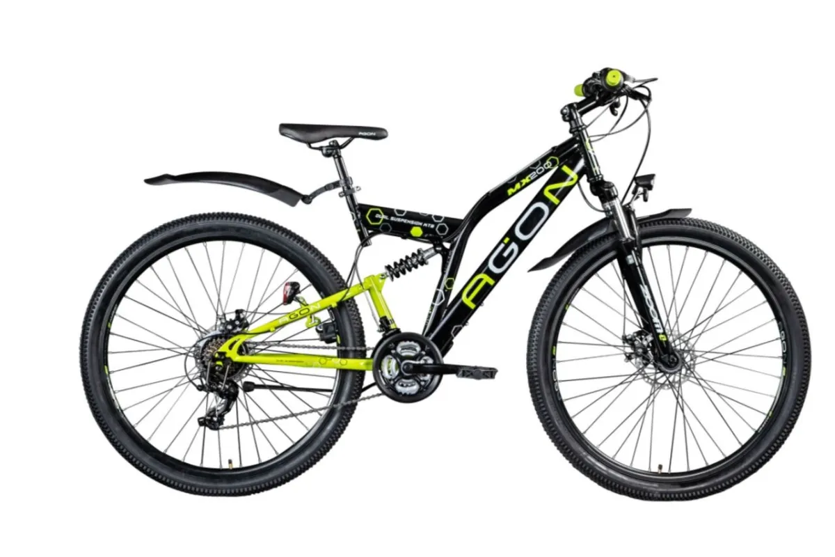 Rower Agon MX200 zbudowany na wytrzymałej, stalowej ramie z przednim oraz tylnym amortyzatorem, z 21 biegowym napędem produkcji Shimano wraz z mocnymi oponami ułatwi pokonywanie terenowych przeszkód, a wytrzymałe hamulce tarczowe zatrzymają rower w każdych warunkach. Agon MX200 jest całkowicie gotowy do jazdy dzięki systemowi oświetlenia, który jest zasilany energią przez boczne dynamo na tylnym kole. W zestawie znajdują się również błotniki i stopka.