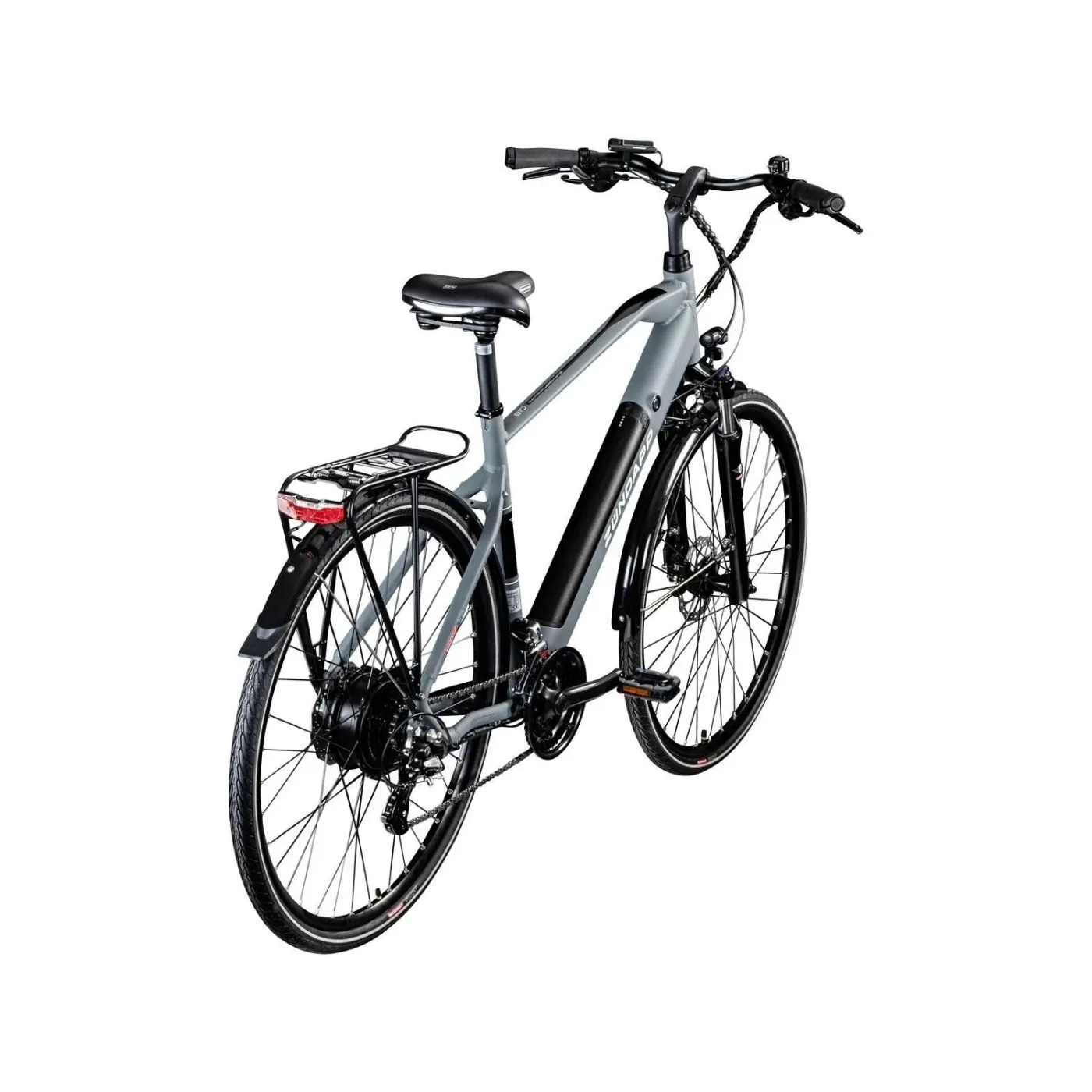 ⚖️Lekka trapezowa rama wykonana z aluminium zapewnia najlepsze właściwości jezdne i całkowicie ukrywa akumulator w dolnej rurze. Tutaj jest optymalnie chroniony przed brudem i kradzieżą. W podwoziu zainstalowano widelec amortyzowany SR Suntour SF14 NEX DS MLO o skoku 63 mm, który można zablokować za pomocą blokady podczas jazdy pod górę i można go dostosować do własnych potrzeb dzięki regulowanemu naprężeniu wstępnemu. Regulowany pod kątem wspornik kierownicy umożliwia precyzyjne dopasowanie pozycji kierownicy do kierowcy. Sama kierownica ma szerokość 610 mm i przesunięcie o 33°, co nie męczy nadgarstków podczas długich podróży.