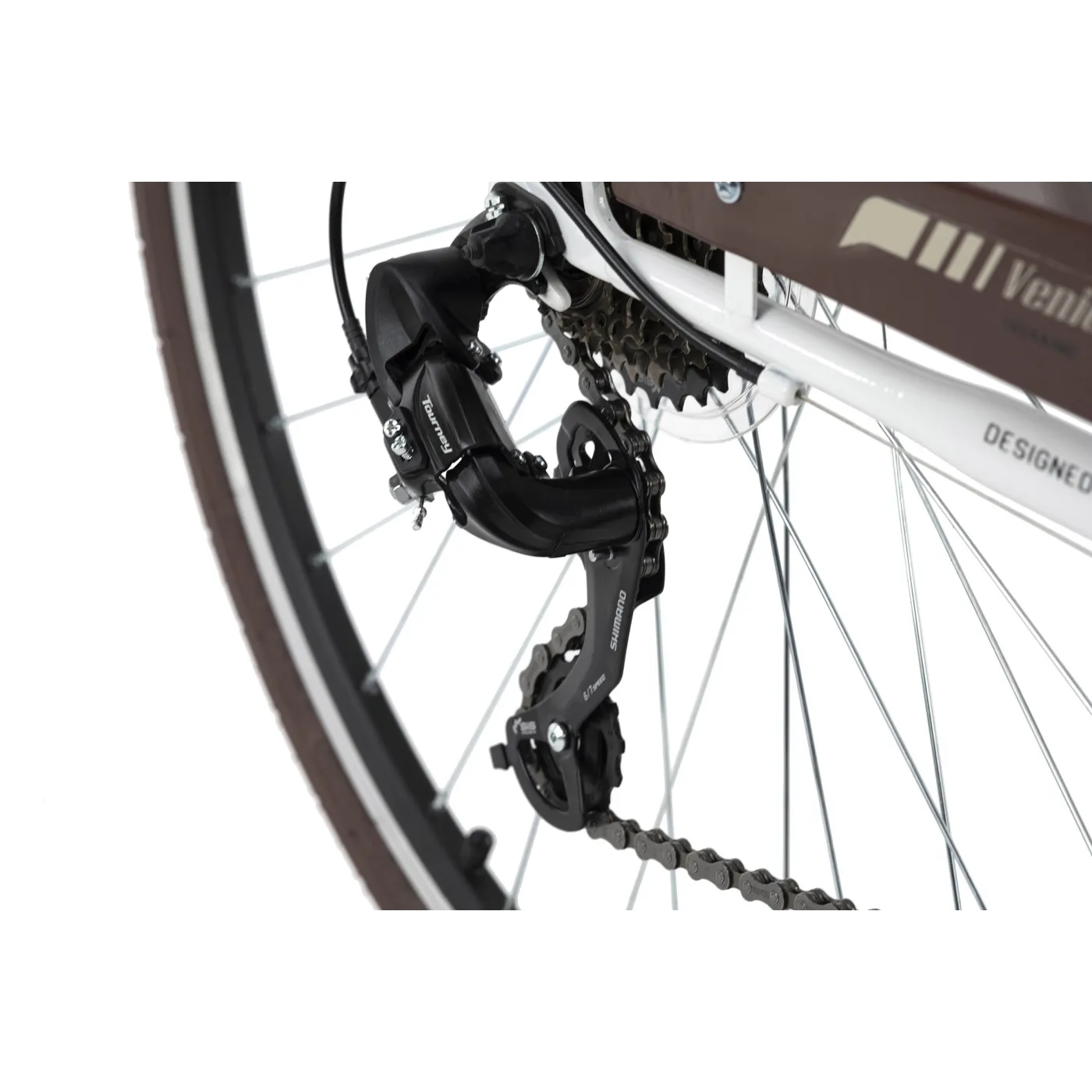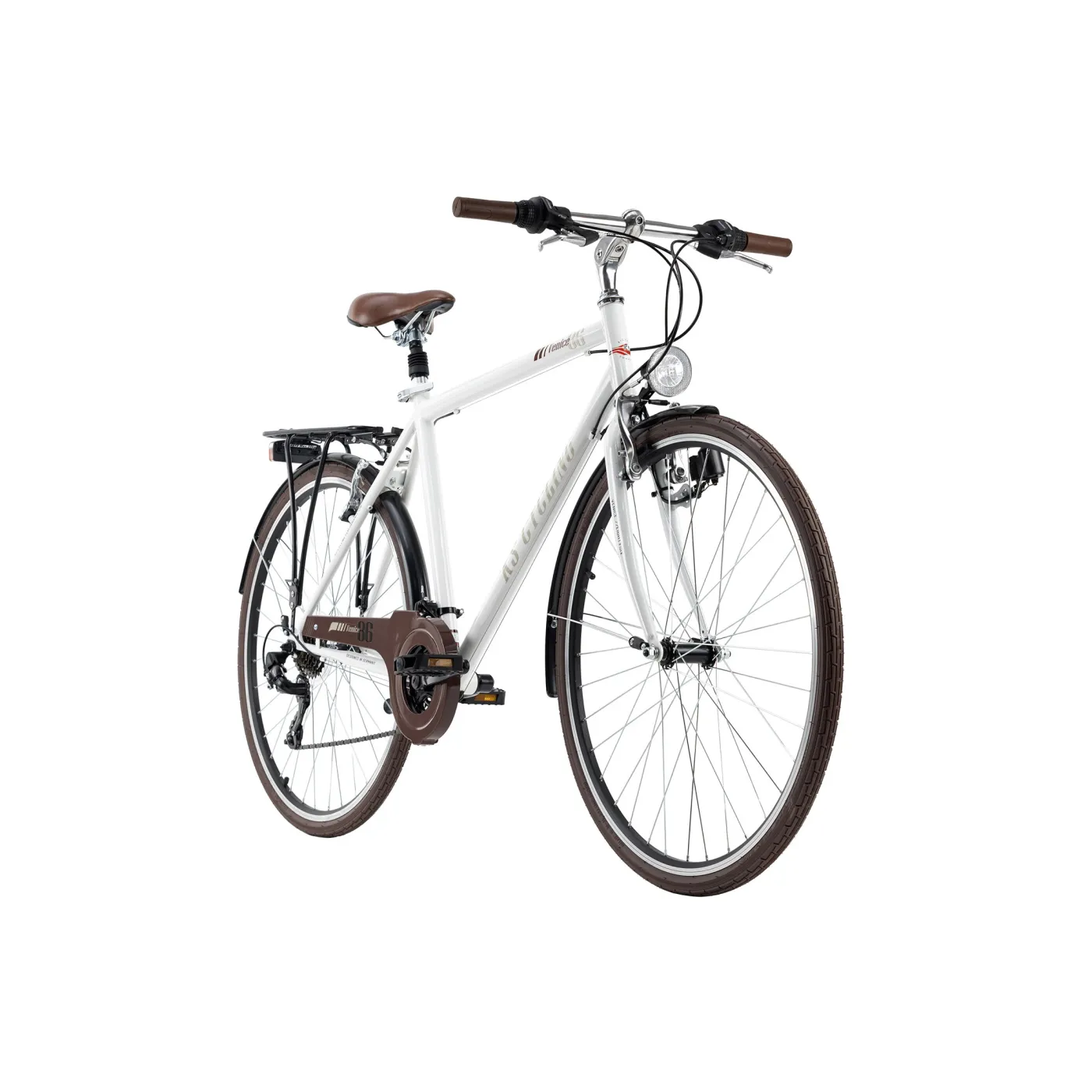 Niezależnie od tego, czy chcesz wygodnie jeździć po mieście, czy planujesz dłuższą wycieczkę: 28-calowy trekkingowy męski rower VENICE firmy KS Cycling jest zawsze z Tobą! Rower ma białą ramę z eleganckimi detalami. Zawiera również opony, osłonę łańcucha, siodełko i uchwyty w tym samym kolorze i dopełniają wzór.