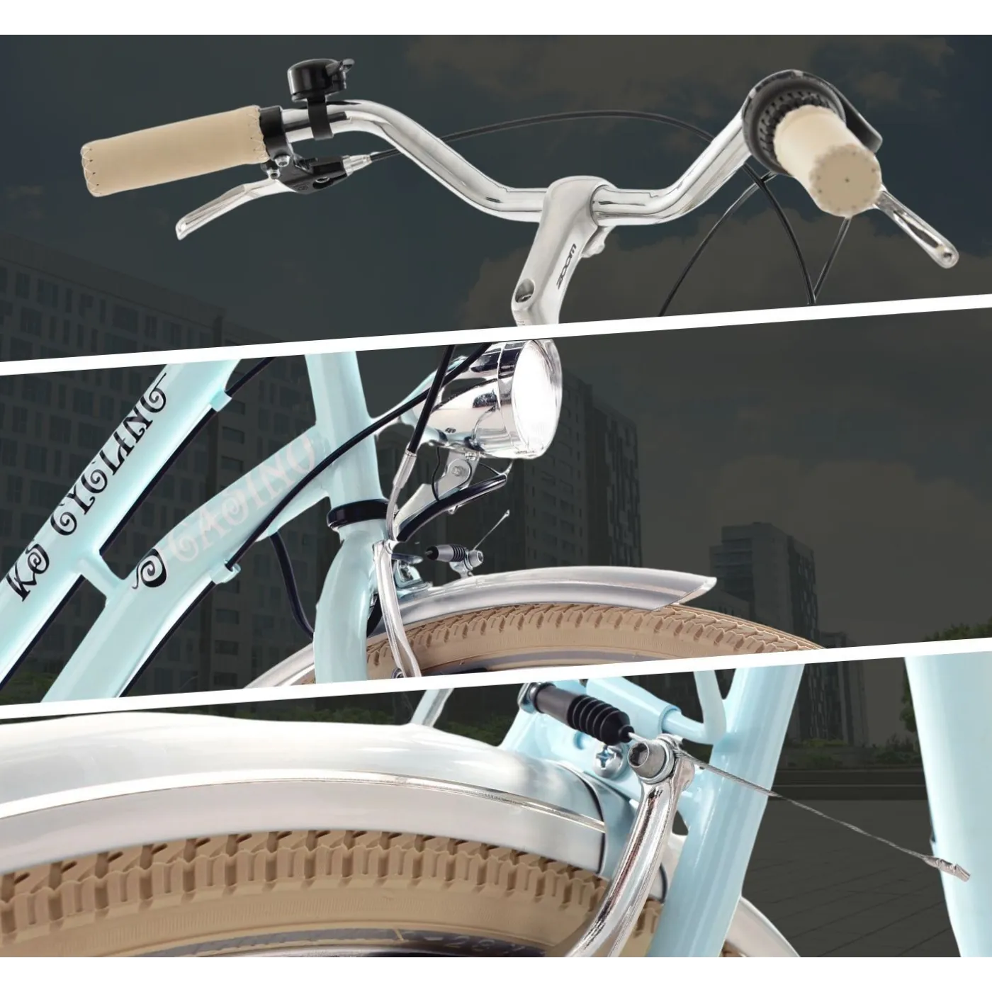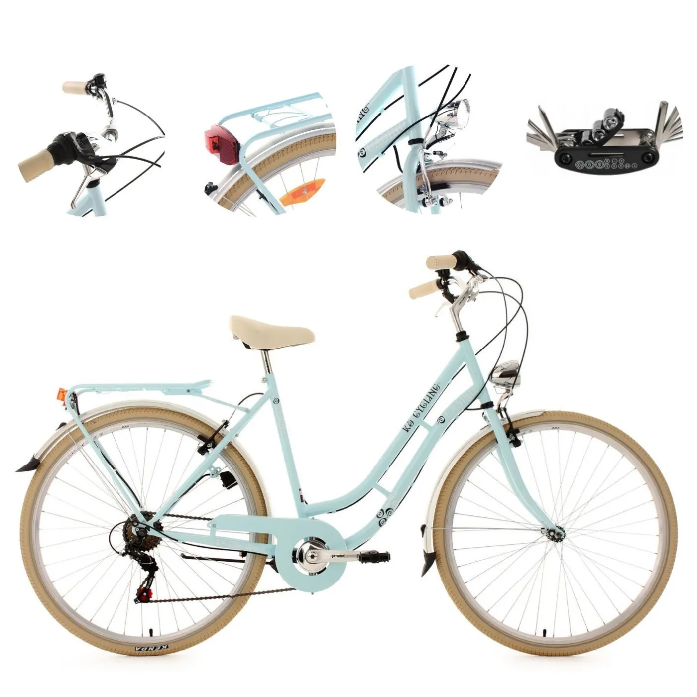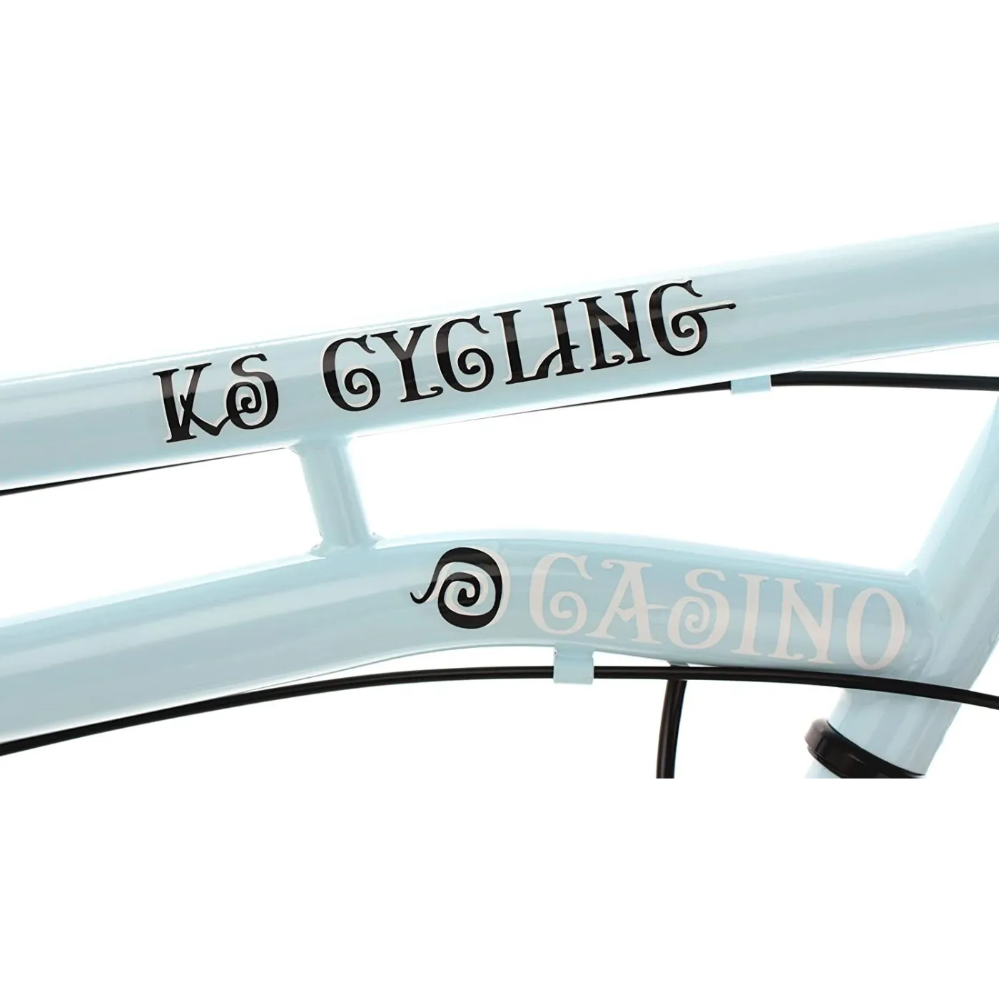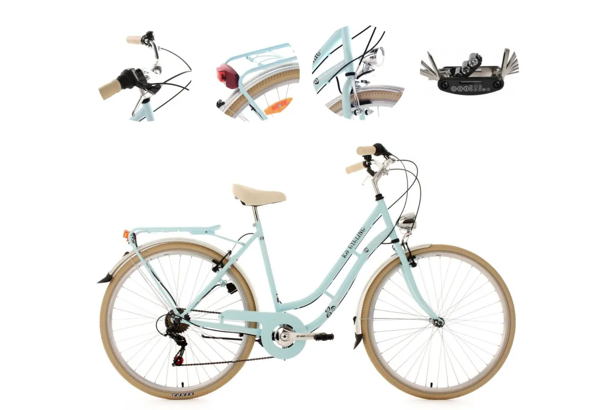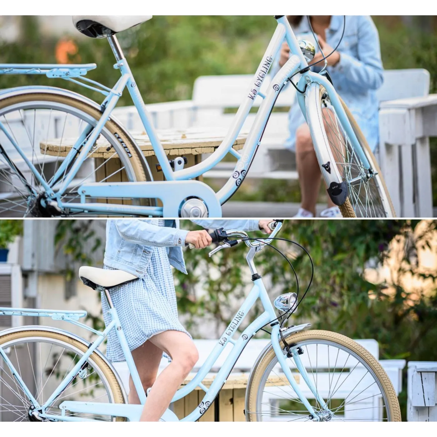 ✔️ Damka ta urzeka swoim retro wyglądem, a jednocześnie wpasowuje się w najnowsze trendy. Połączenie naturalnych beżów z pięknym pastelowym niebieskim kolorem sprawia ze rower miejski Casino jest wyjątkowy. Model wykonany został z wytrzymałej stali, a do tego w zestawie znajduje się równie przydatne oświetlenie oraz bagażnik.
