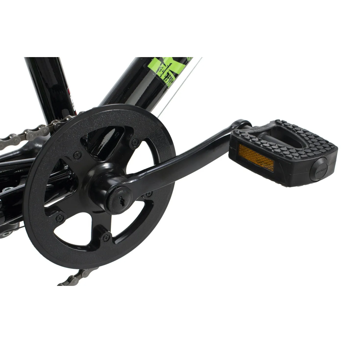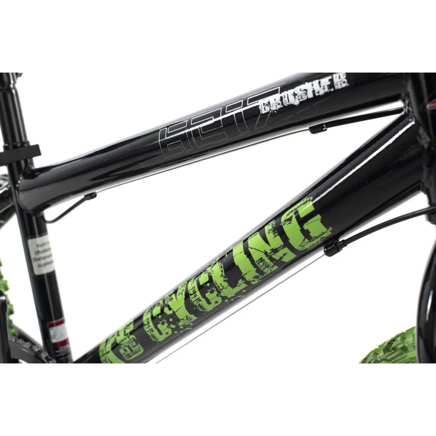 20-calowy rower dziecięcy Crusher firmy KS Cycling to solidny rower górski dla najmłodszych, który w niczym nie ustępuje dorosłym. Każda z opon typu Muddy z głębokim bieżnikiem jest wyjątkowa, a czarny design z zamieszczonymi kolorowymi elementami sprawiają, że rower z łatwością przyciąga wzrok. Hamulce V-brake z przodu oraz tyłu zapewniają bezpieczeństwo. Rower jest również wyposażony w 6-biegową przerzutkę renomowanej firmy Shimano.